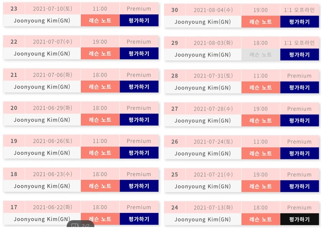 <21년 6월 22일부터 21년 8월 4일까지 최애 영어 티쳐와만 수업을 진행했다.>