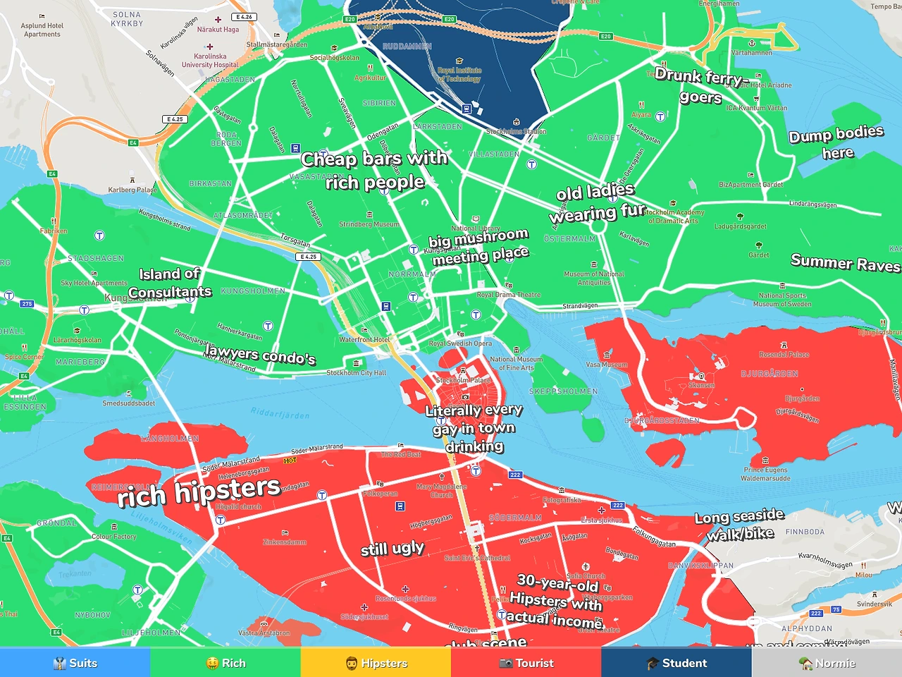 스톡홀름은 14개의 큰 섬들로 이루어진 도시로 동쪽으로는 발트해에 접하고 있다. 면적은 188km^2으로 서울의 30%, 인구는 98만으로 서울 대비 10%이므로 인구 밀도는 서울의 1/3 정도다. 이런 지리적인 요건으로 인해 페리와 트램과 같은 교통편도 존재한다. 아래 스톡홀름역 사진을 보면 도보와 분리된 자전거도로, 빨간색 버스와 파란 트램의 앞부분과 같은 교통의 특징들을 살펴볼 수 있다.