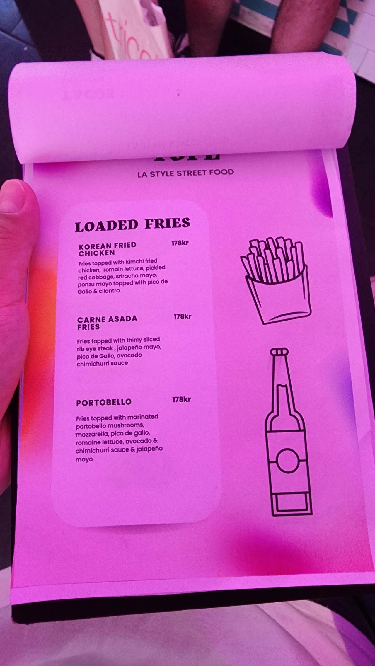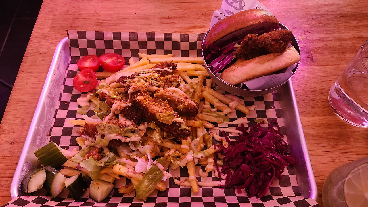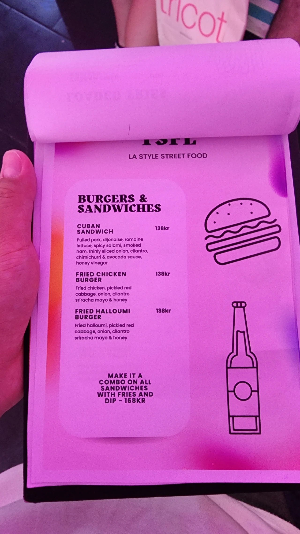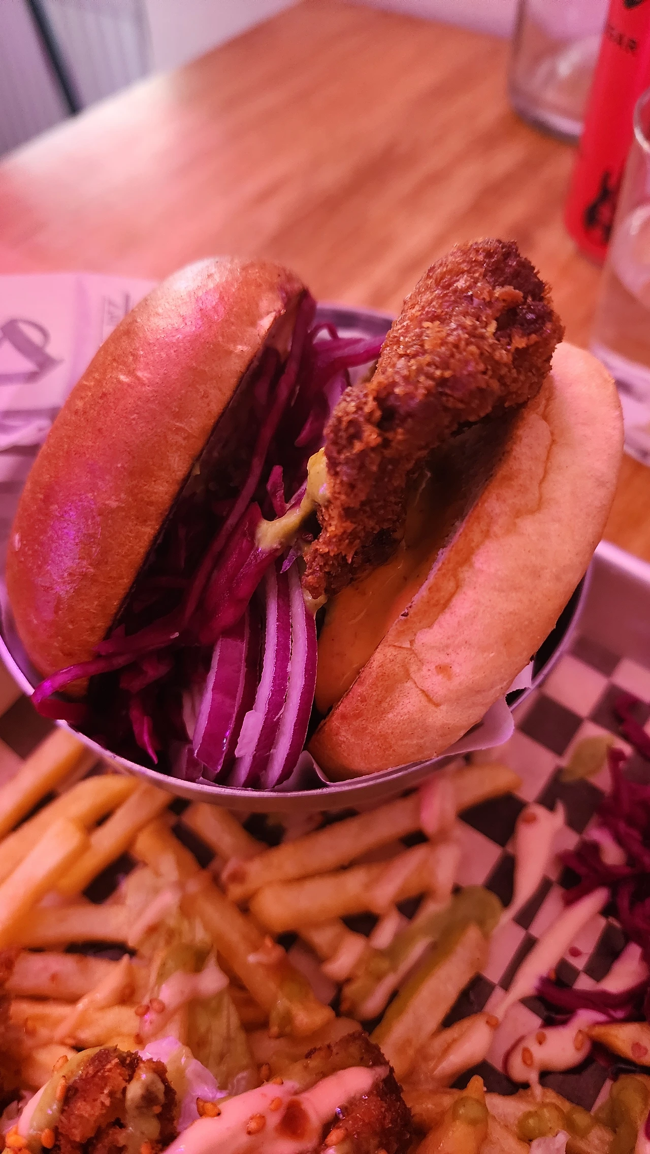 저녁 - Korean Fried Chicken (178kr), Fried Chicken Burger (138kr), Appletini (158kr), 콜라 (?)
