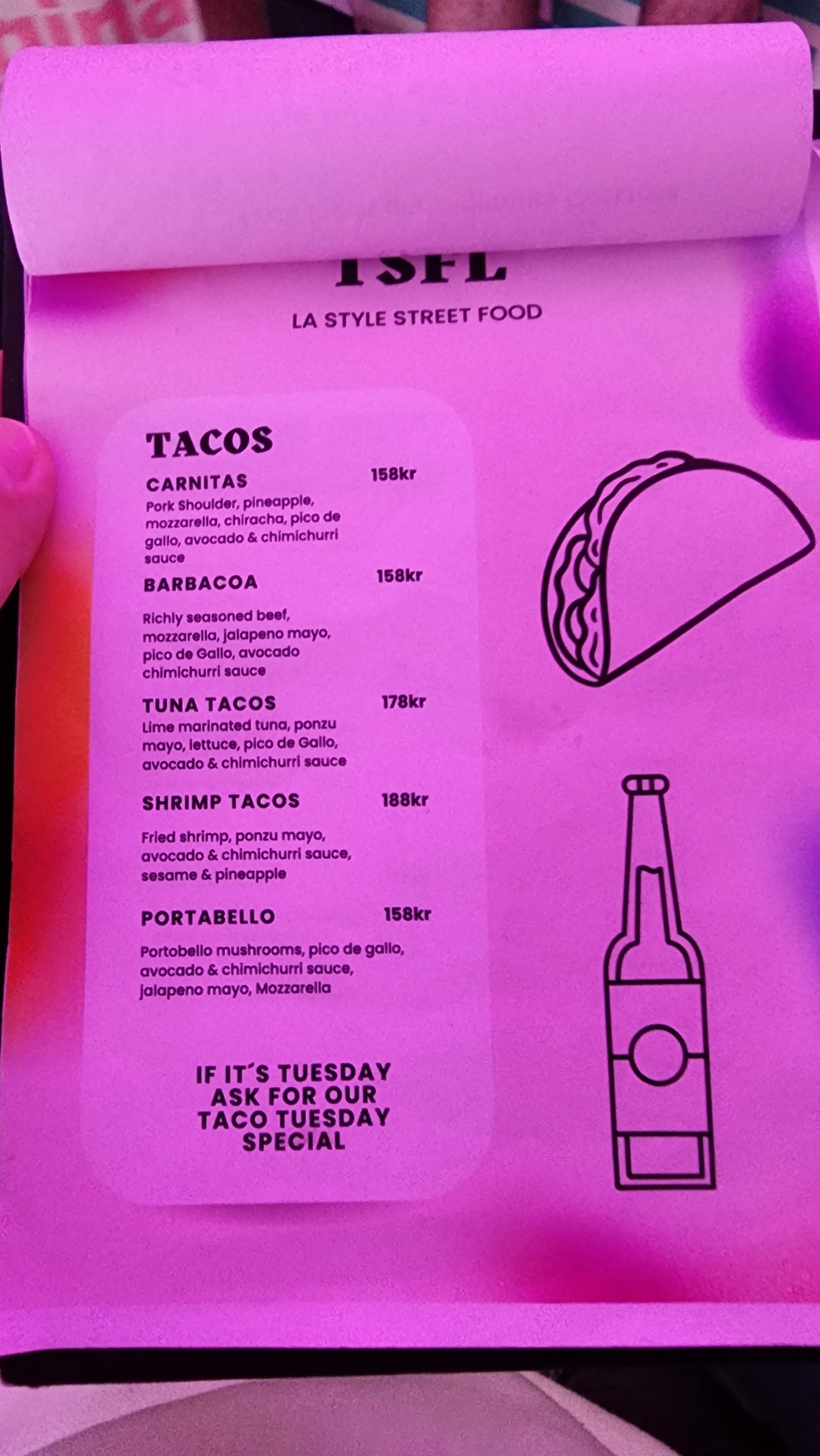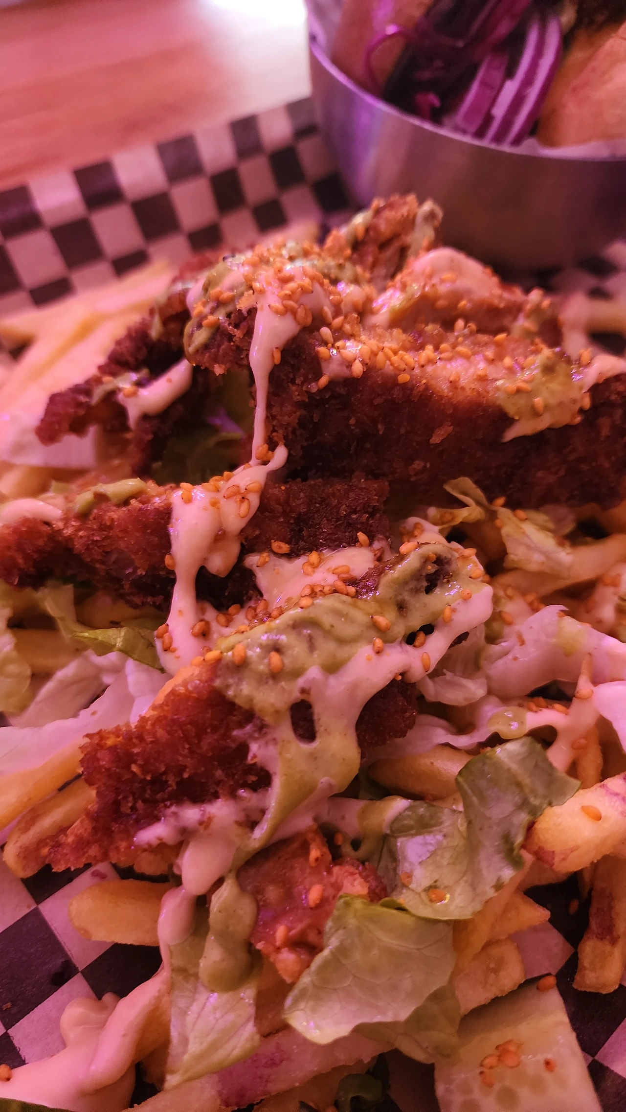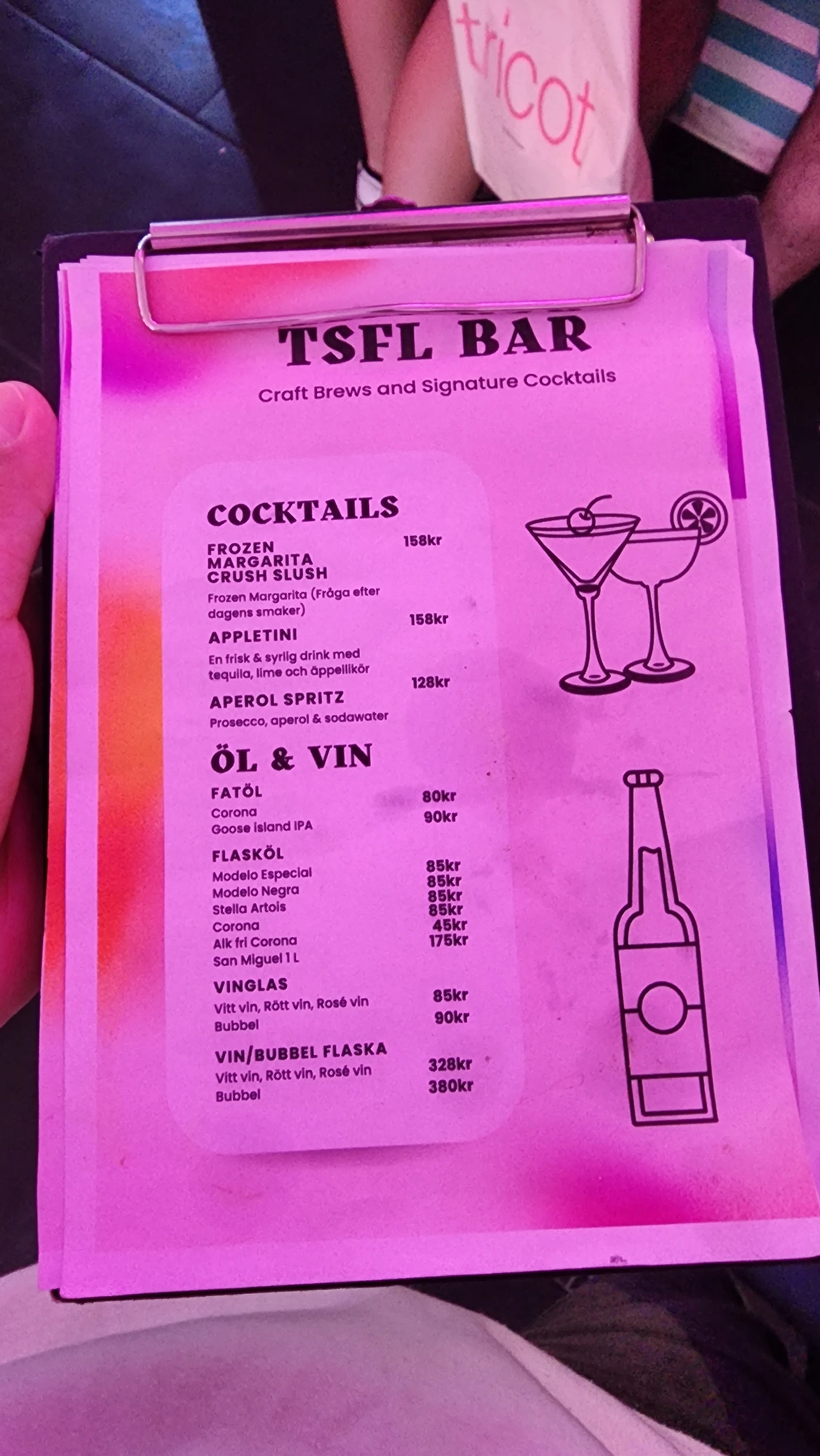 저녁 - Korean Fried Chicken (178kr), Fried Chicken Burger (138kr), Appletini (158kr), 콜라 (?)