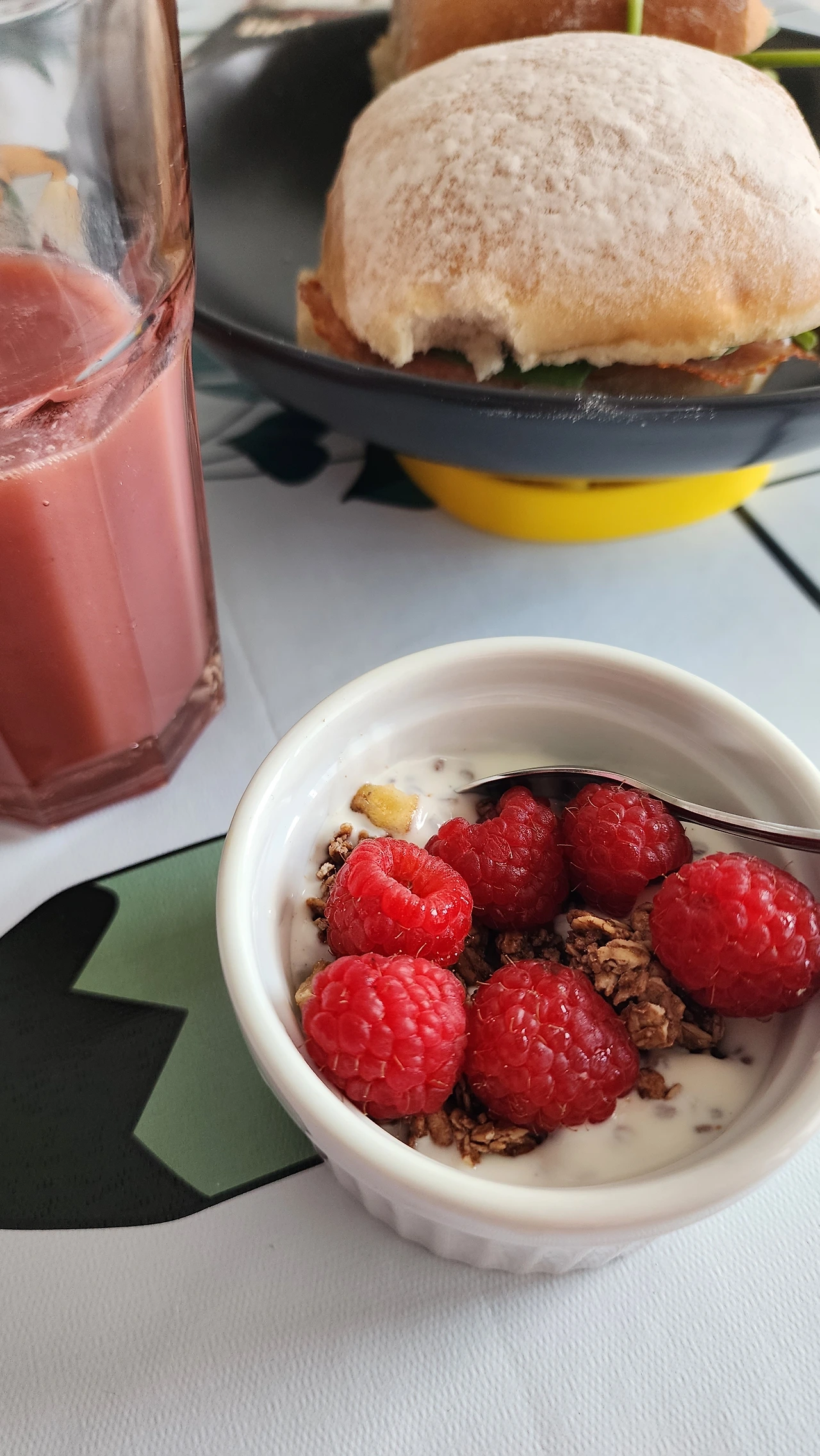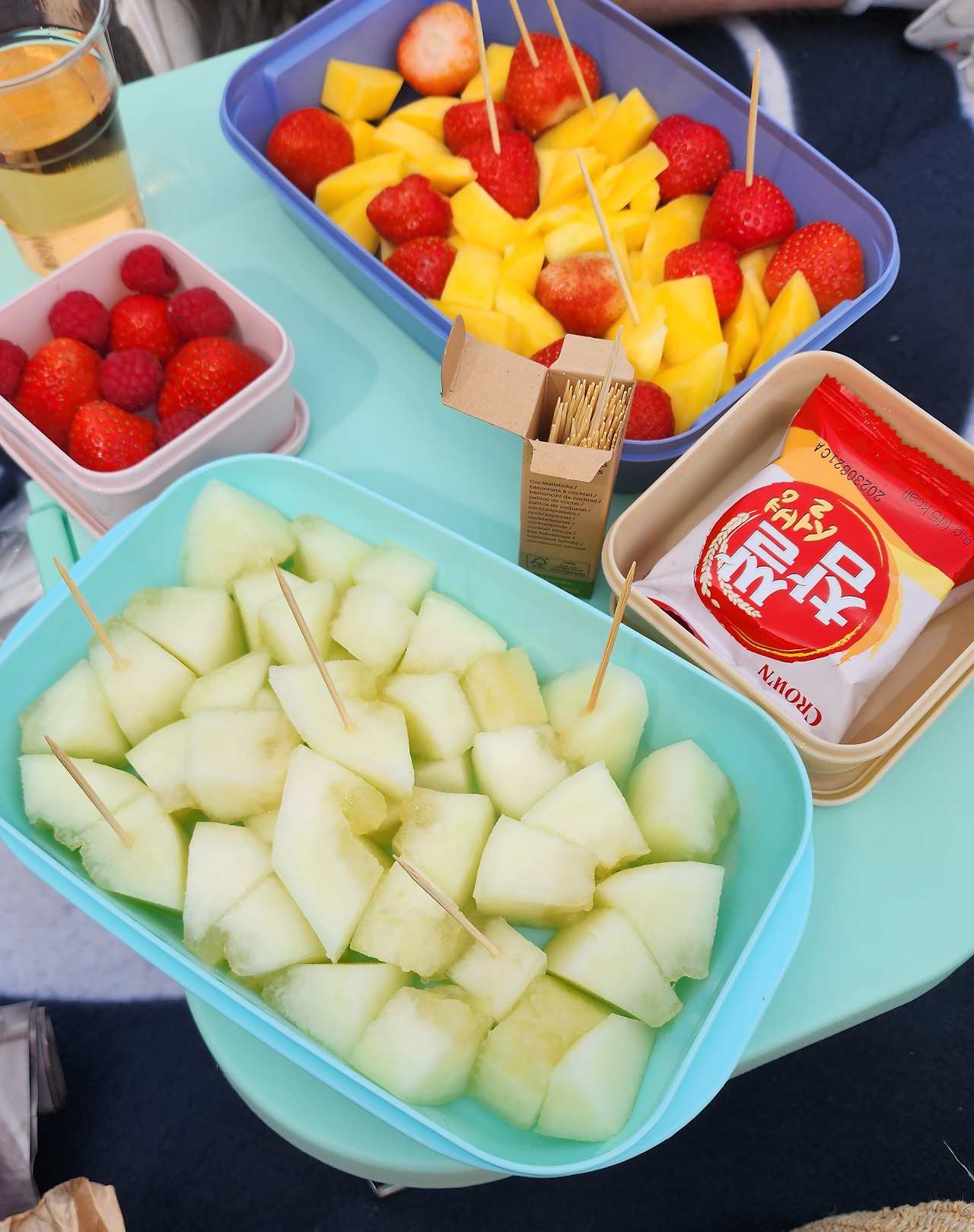 아침 샌드위치와 라즈베리 + 크바리 (Kvarg) + 나들이용 과일 (본인 준비)
