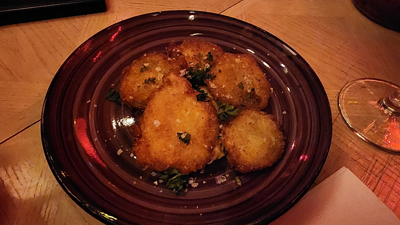 요리: Fried Green Pomatoes, Small Gambas Pan, Louisiana Brisket BBQ