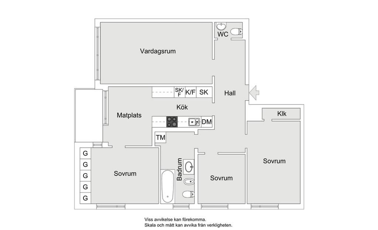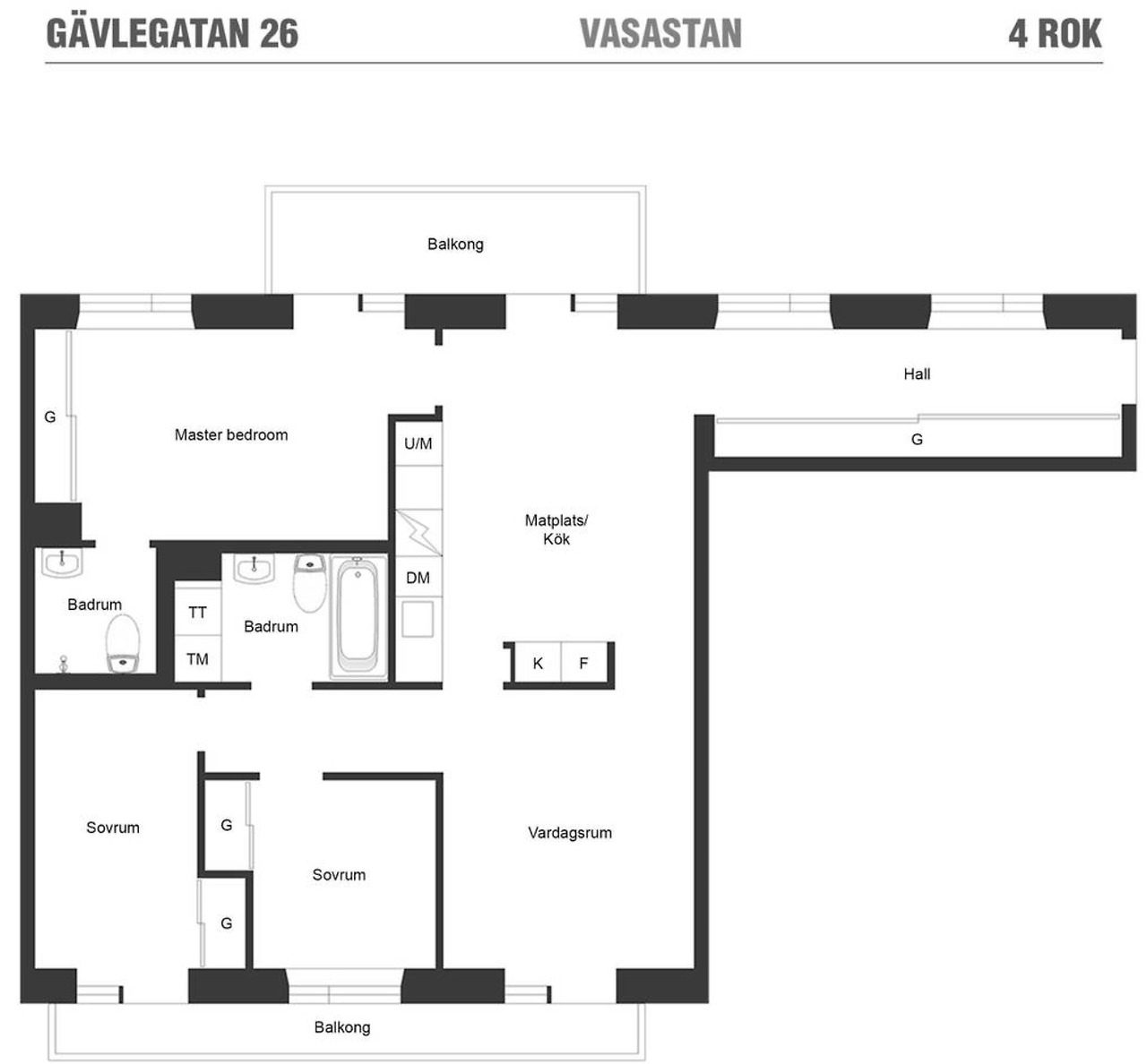 글 (3-1)에서는 면적만 비슷한 두 예시를, 글 (3-2)에서는 비슷한 가격대에서 선택 가능한 원룸부터 2층 주택까지 이르는 다양한 예시들을 살펴봤다. 이번 글에서는 일반적인 한국 아파트 구조인 "방 3개, 거실, 주방, 화장실 2개"의 평면도가 스웨덴 아파트에서는 얼마나 자유로울 (혹은 제멋대로) 수 있는지 알아보겠다. 판상형이나 타워형, 투베이나 쓰리베이, 포베이 같은 그런 말로는 설명하기 어려운 평면도들이다.