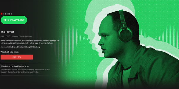 넷플릭스 시리즈인 The playlist다. (트레일러) 총 6부로 1편에 50분 내외로 하루에 다 보거나, 이틀 정도면 부담 없이 볼 수 있을 만하다. 스웨덴에서 시작해 세계적인 음악 스트리밍 서비스 기업으로 성장한 스포티파이에 관한 이야기를 다룬다. 배경이 그렇다 보니 배우들도 스웨덴어를 구사하고 현지에서 촬영한 장면들도 많다. 이전 글에서 어렵다고 찡얼댔었던 스웨덴어를 직접 들어볼 수 있고 그들의 사고방식의 일면을 접할 수 있는 작품이기도 하다.