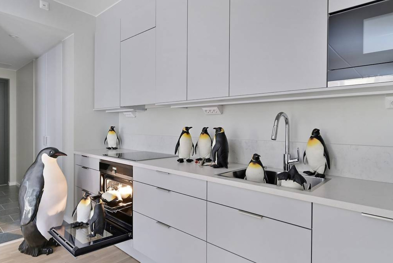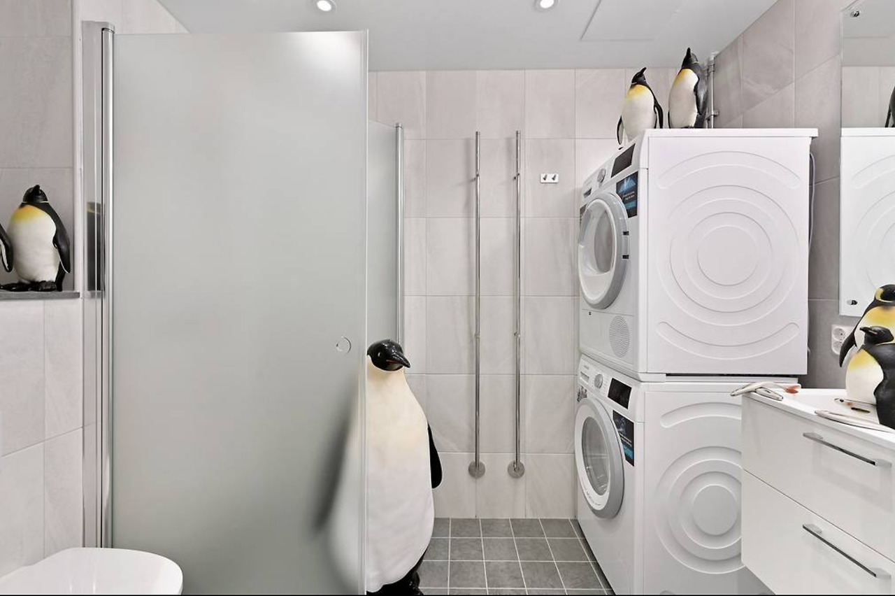 한국에서는 이사할 때, 일반적으로 냉장고나 에어컨 등 가전제품들도 가구와 함께 옮긴다. 스웨덴에서는 집을 살 때, 냉장고와 오븐, 식기 세척기 등의 가전제품이 포함된다는 부분이 신기했다. 예를 들어, 위 신축 아파트 분양 사진에서도 냉장고와 오븐, 세탁기 등의 가전제품이 이미 빌트인 되어 설치된 것을 확인할 수 있다. (귀여운 펭귄들이 어서 빨리 우리 집에 들어오시라고 반긴다.) 구축 아파트를 구매할 때에도 일반적으로 유사한 목록의 전자 제품들이 집과 함께 포함된다.