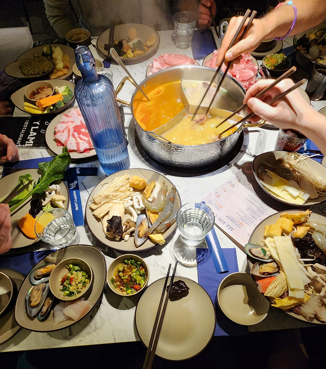 팀 회식으로 훠궈 혹은 영어로 Hot Pot을 먹기 위해 Happy Lamb에 방문했다. 회식 전에 실내에서 간단한 몇 가지의 팀 액티비티를 함께 즐기고 온 터라, 배 터지게 무한 리필을 먹을 준비를 마쳤다.