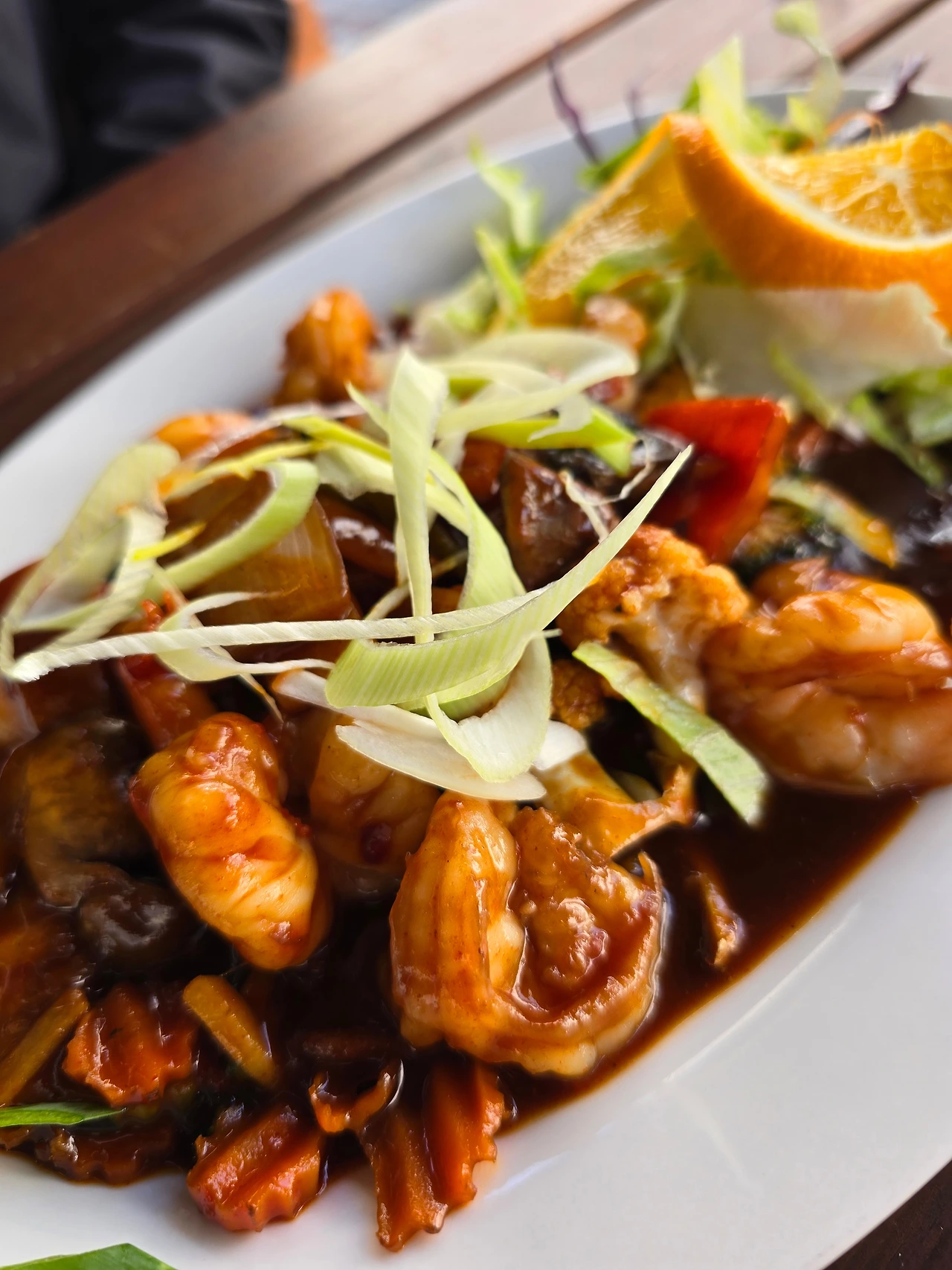 저녁 - 새우 요리와 치킨 요리 (메뉴 이름은 기억나지 않음)