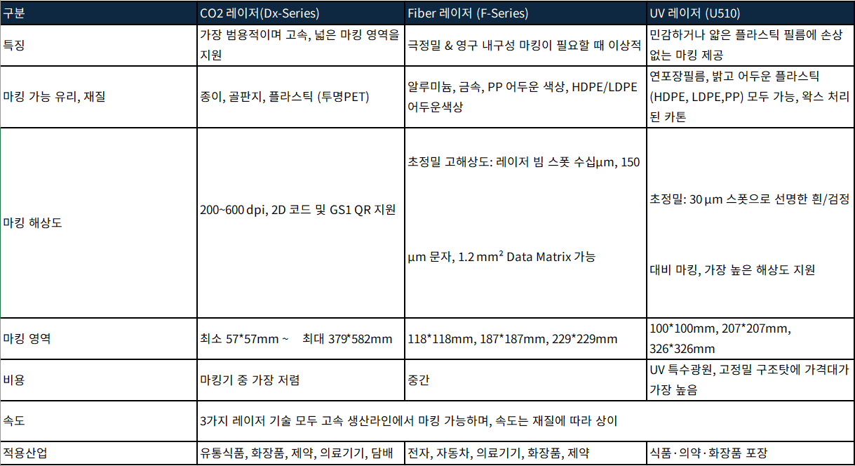 CO, 파이버, UV 레이저 전 제품군을 보유하고 있어,