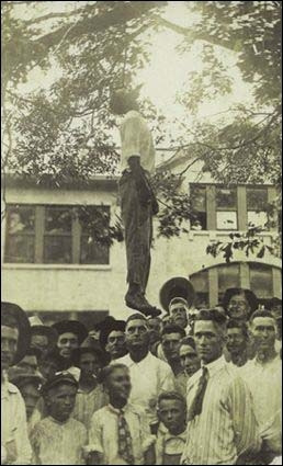 백인들의 눈 아래서 용의자는 집단 폭행을 당한 후 나무에 매달린다. 아침에 꺼낸 옷을 입은 그대로이다. 그에 화형까지 더할지는 정의의 심판자인 백인의 재량 하에 결정된다. 나무에 매달린 사람 아래로 그들은 시민 정의와 자력구제, 사회 공동체를 유지하는 것에 대한 말을 쏟아내고 카메라가 설치된다. 그들은 렌즈를 본다. 사진은 백인들의 기념엽서로 쓰인다.