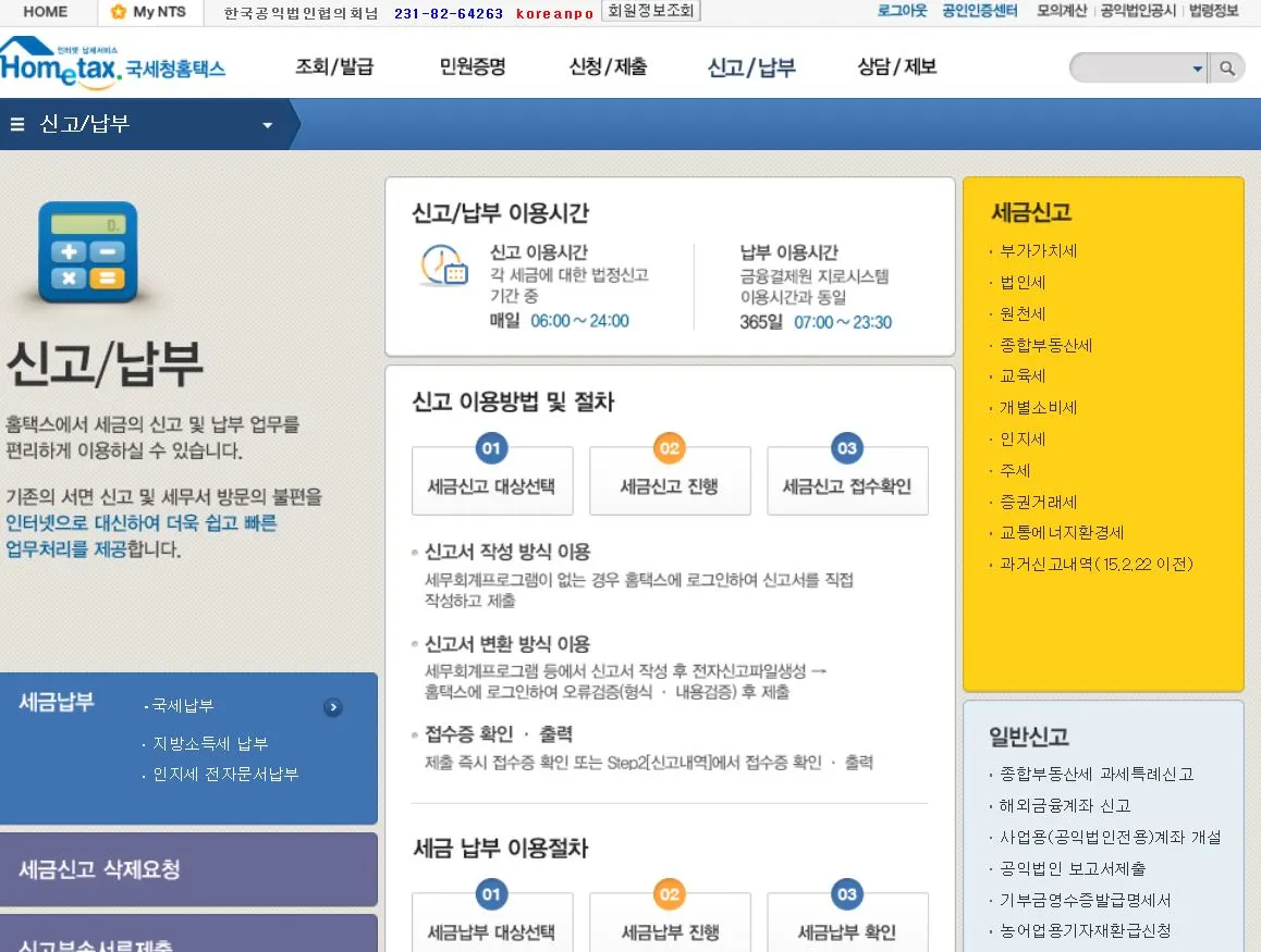 1. 국세청 홈택스에 로그인 (www.hometax.go.kr) -> 신고/납부 메뉴 클릭