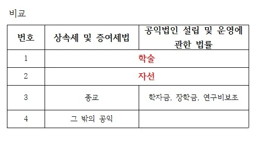 즉 「상속세 및 증여세법」에서 규정하는 공익법인은 해당 법인이 수행하는 사업의 내용을 실질적으로 따져 공익성이 있다면 해당 법률을 적용받는 것입니다.