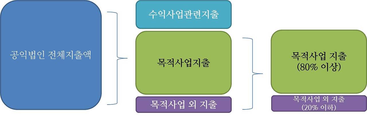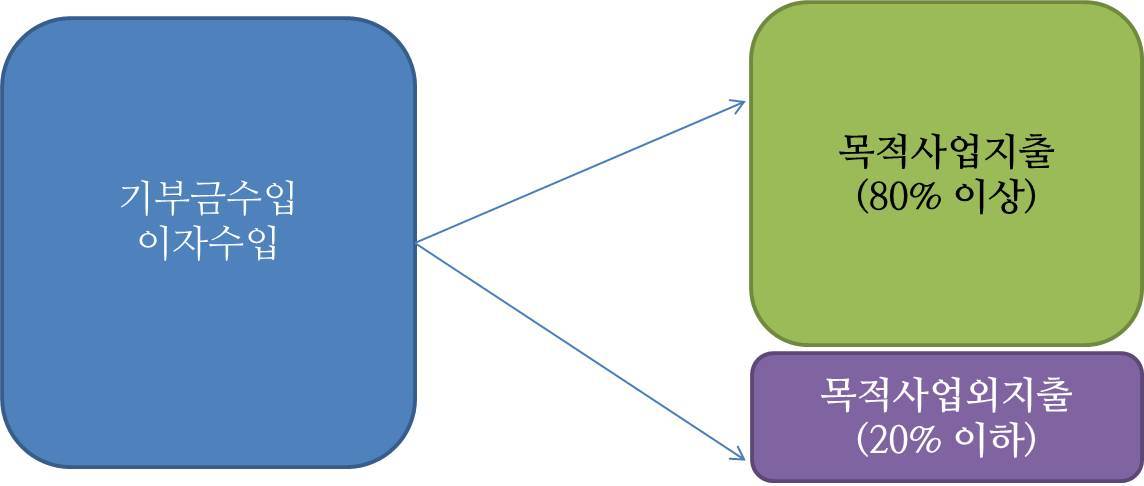 2) 목적사업 지출액 중 100분의 80이상은 직접고유목적사업에 지출해야 함.