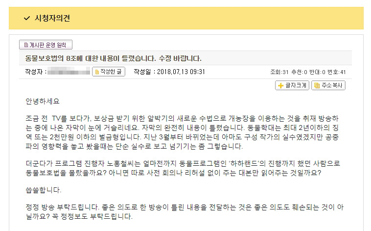 더욱이 시청자 게시판에 올라온 지적을 찬찬히 살펴보니, 7월 13일 방송에서 있었던 실수는 큰 실수가 아니었다. 최근에 개정된 법률 내용을 제대로 반영하지 못해 생긴 문제였다. 물론 사소한 것도 정확하게 전달해야 한다. 시사 정보 프로그램이라면 더더욱 그러하다. 다른 프로그램보다 더 높은 수준의 ‘사실 확인(fact check)'이 요구된다. 하지만 지난 방송의 실수는 진실을 왜곡하지 않는, 단순 실수였다. 악의도 없어 보였다.