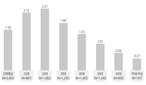 연령대 별로 10, 20대의 스마트폰 하루 평균 이용 시간 높은 것으로 나타났지만, 40대, 50대 이용자의 이용 시간도 낮지 않은 것으로 드러났다. 이러한 점은 시사한다. 지금 20대를 대상으로 한 < 14F >의 스핀오프(spin-off, 기존의 영화, 드라마, 게임 따위에서 등장인물이나 설정을 가져와 새로 이야기를 만들어 내는 것)도 가능하다는 사실을 의미한다.