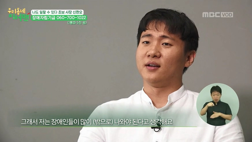 ‘샤르코 마리 투스’ 이름부터 생소한 희귀병을 앓고 있는 장애인 신현오 씨의 경우가 특히 그러했다. 샤르코 마리 투스는 2500명 중에 1명 꼴로 손과 발의 근육이 서서히 위축되는 희귀 질환인데, 방송은 이러한 장애를 겪고 있음에도 신 씨가 왜 ‘창업’을 하려고 하는지, 창업 이유와 과정을 자세히 보여줬다. MBC < 우리동네 피터팬 >에서 신 씨는 자신과 같이 몸이 불편한 장애인들이 문화생활을 즐기기 어렵다는 우리 사회 현실을 지적하며, 장애인도 일반인처럼 여행도 가고 싶고, 맛집도 쉽게 방문할 수 사업을 시도하려고 한다는 점을 말했고, 방송은 이 창업 과정을 장애인과 호흡을 맞추며 잘 드러내 주었다.