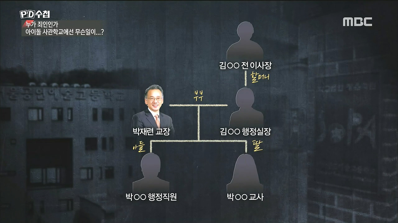 재벌과 다름없었다. 마피아식 가족 경영이었다. 지난 4월 30일, MBC <PD수첩> "누가 죄인인가, 아이돌 사관학교에선 무슨 일이...?" 편에서 보여준 서울 공연예술고등학교의 학교 운영과 경영상황이 그러했다. 이날 방송에서 보여준다. 한 개인의 잘못이 구조적인 문제와 연결됐을 때, 어떠한 패악을 저지를 수 있는지를, 그래서 우리 사회 약자인 학생들이 어떻게 가장 아프게 다칠 수 있는 지를 드러냈다.
