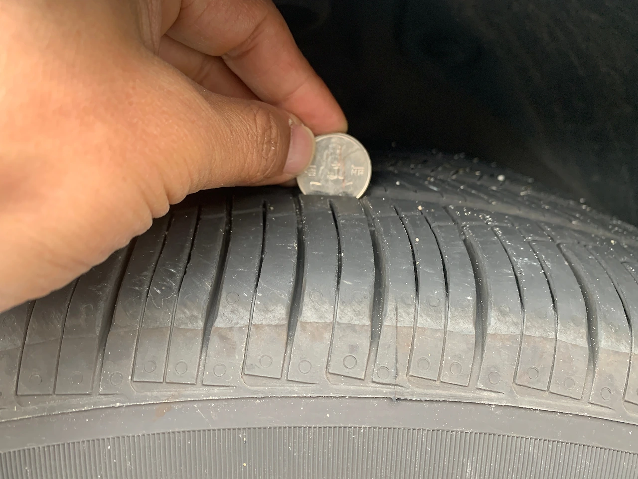 오늘 타이어 마모 여부를 살펴 보았습니다. 100원짜리 동전을 타이어에 꼽고 감투 전체가 보이면, 얼른 교체해야 하지요.