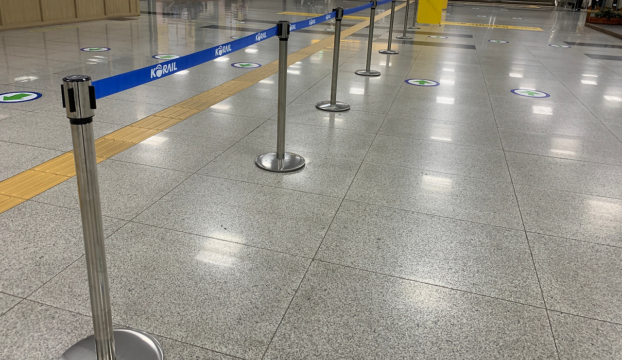 가차역이나 건물 주변을 지나다보면, 통제선이 쳐저 있는 것을 볼 수 있지요. 물리적 분리가 되지 않는 광장이나 건물의 홀(hall)은 통제선을 활용해 사람들의 움직이는 방향을 결정하고 서로 다른 사람들을 분리하는 역할을 합니다.