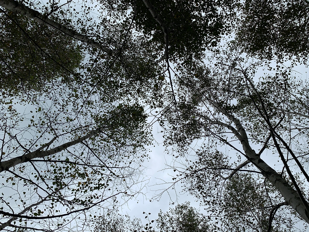 적당히 구름낀 하늘과 자작나무의 작은 잎들이 점으로 구성된 하나의 그림처럼 느껴지더군요. 구름이라는 필터로 인해 약해진 태양빛은 자작나무 잎 아래로 검은 그림자를 만들어 본래의 초록색 잎의 색을 감추었고, 마치 검은 먹물이 묻은 붓 끝을 휘둘러 불규칙하게 흩어진 먹물의 흔적처럼 느껴졌습니다.