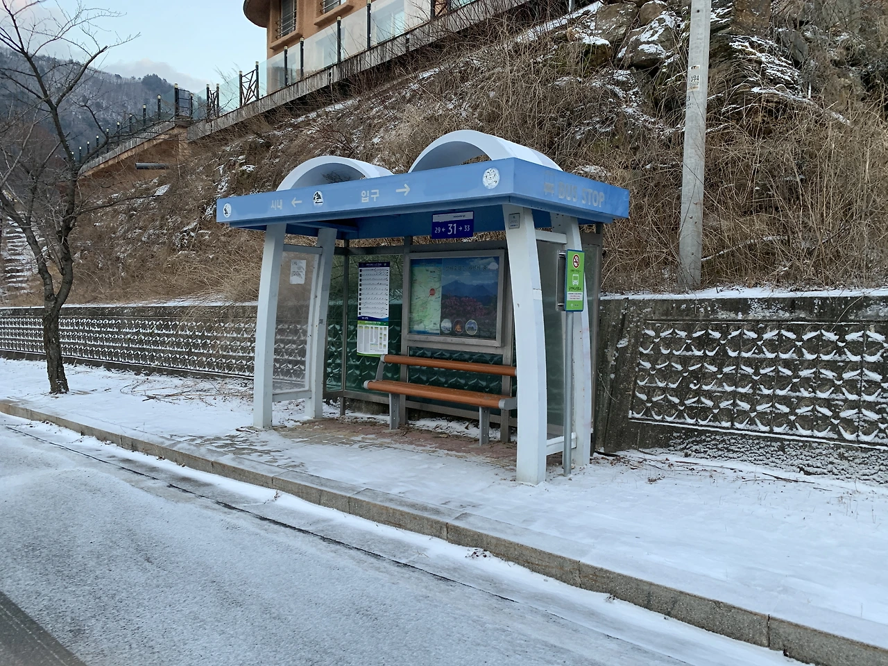 전에 출근하다가 버스가 하루에 5번 정도 오가는 작은 버스 정류장를 보았습니다. 이곳의 정류장은 버스가 자주 다니지 않지만, 시내에 볼일이 있는 마을 어르신들의 발이 되어주는 중요한 곳이지요.