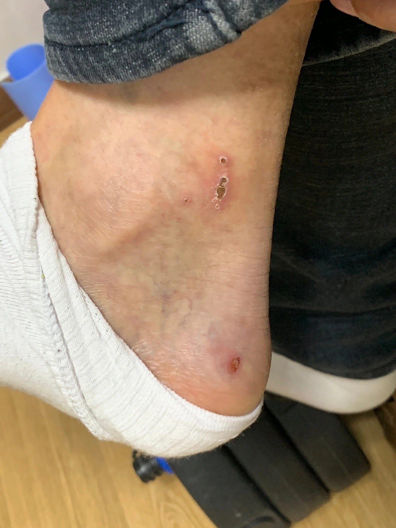퇴근 후 양말을 벗는데, 따끔한 느낌에 무엇인가 잘못된 것을 알게 되었지요. 아니나 다를까 며칠전에 발목 부근이 가려워 한참을 긁었던 기억이 납니다. 그 자리에 딱딱한 딱지가 앉아 거친 모습을 드러내고 있었지요.