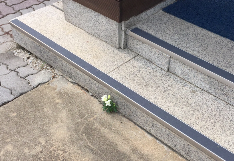 퇴근하기 위해 중앙 현관문을 나서는데, 문득 눈에 들어온 꽃 한 송이가 있었다.