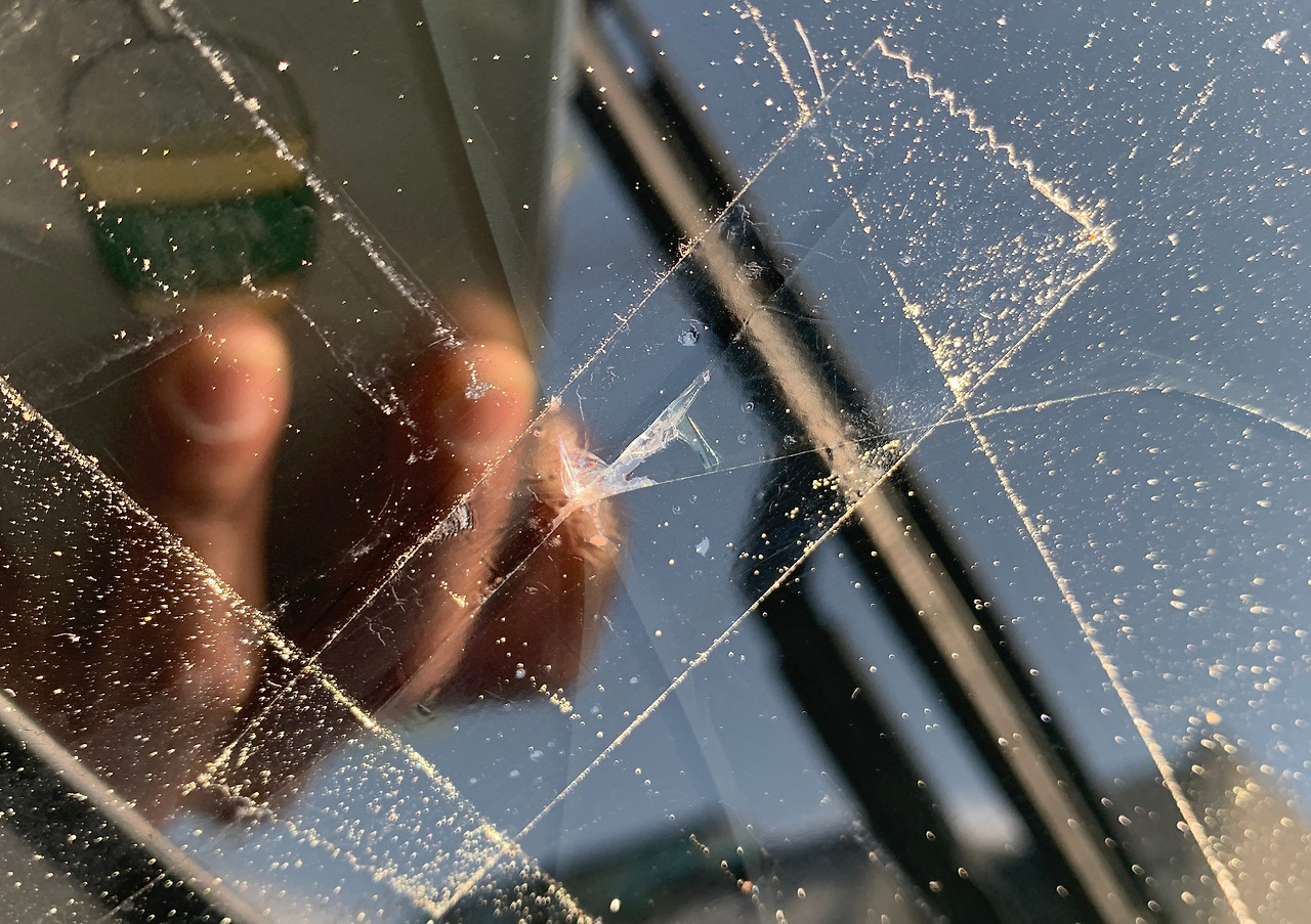 문제는 낡은 와이퍼가 빠지지 않아 거의 분해하다 싶히 다 뜯어낸 후에야 간신히 성공하였는데, 그만 와이퍼 암을 놓치고 말았지요. 와이퍼 암은 앞유리를 강하게 때렸고 유리창에는 강한 충격의 흔적을 남기고 주변으로 금이 나 있었습니다.