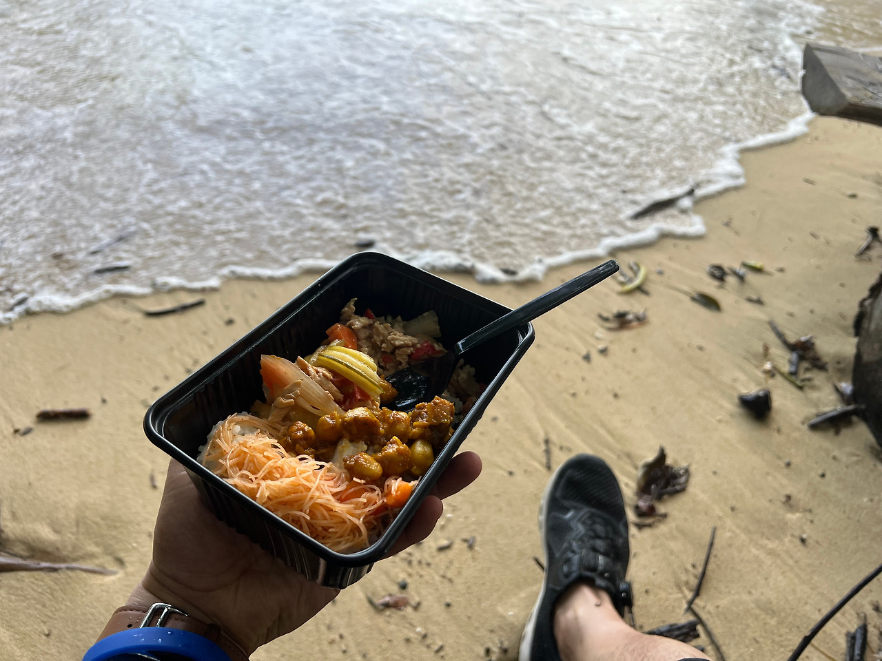 어느덧 점심을 먹으러 팍비아 섬(Koh Phakbia)으로 이동하였다. 점심은 여행사에서 이것 저것 준비해준 음식으로 화려하지 않지만 그럭적럭 배는 채울 수 있는 정도였다. 혼자 여행을 왔을 때, 아쉬운 점이 홀로 점심 식사를 하는 것이다. 한국사람이 2명이 있었지만 INFP 성향의 나는 섬 구석에서 그냥 혼자 밥을 먹는 것이 편했다. 다른 곳은 몰라도.. 끄라비는... 혼자오면 진짜.. 외롭다..