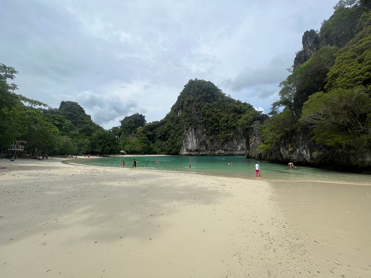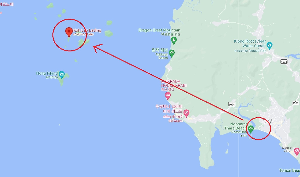 드디어 첫번째 섬인 라오라딩 섬(Ko Lao Lading) 해변에 도착하였다. 끄라비 여행 중 가장 마음에 들었던 해변으로 맑은 물과 바위 산으로 둘러쌓여 따뜻하고 온화한 느낌이 들었다. 수영도 가능하지만 경치를 느끼고 싶어서 슬금슬금 둘러보았다. 하지만 해변 이외에는 섬자체를 둘러볼 수 없어서 아쉬움이 있었다. 참고로 여기는 인생샷 건지기 최고인 장소인듯...
