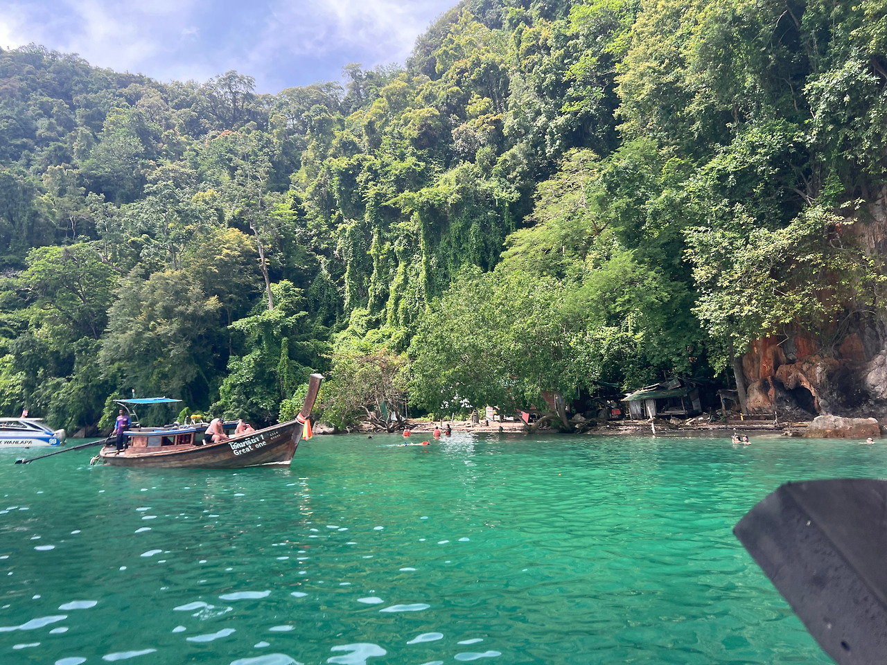 어느덧 숙소로 돌아갈 시간이다. 파도를 헤치고 나아가는 스피드보트가 이리저리 흔들린다. 정말.. 오랜만에 배멀미를 느낀다. 오는 동안 계속 앓는 소리를 내고 눈을 감고 얼른 육지에 도착하기를 바란다. 배타는 것을 얕잡아보고 국내에서 멀미약을 챙겨오지 않은 것이 후회된다. 며칠 후 피피섬 투어를 위해 멀미약을 사기는 했지만 몸에 맞지 않아서 하루종일 몽롱하고 어지러움에 더 힘들었다.