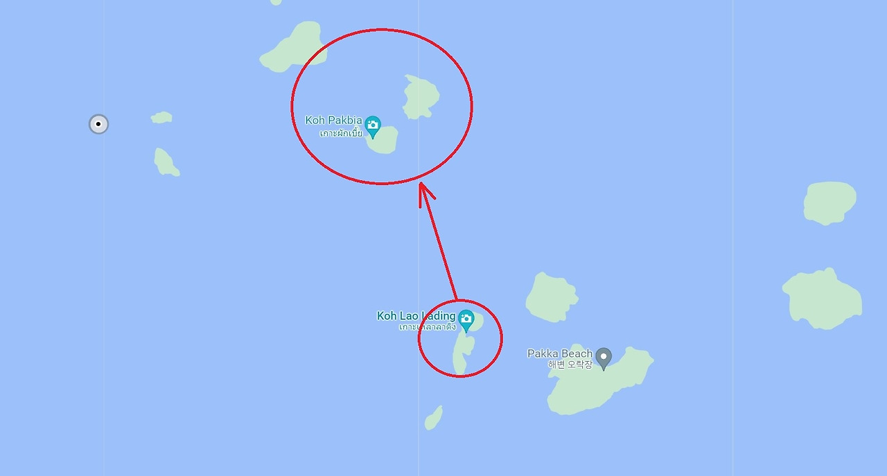팍피아 섬과 바로 앞에 있는 라이랜드(Rai Island)는 한 100m 정도 거리로 얕은 수심으로 연결되었 있어 걸어서 갈 수 있다. 섬과 섬이 바닷길로 연결된 것이 신기하게 느껴진다.