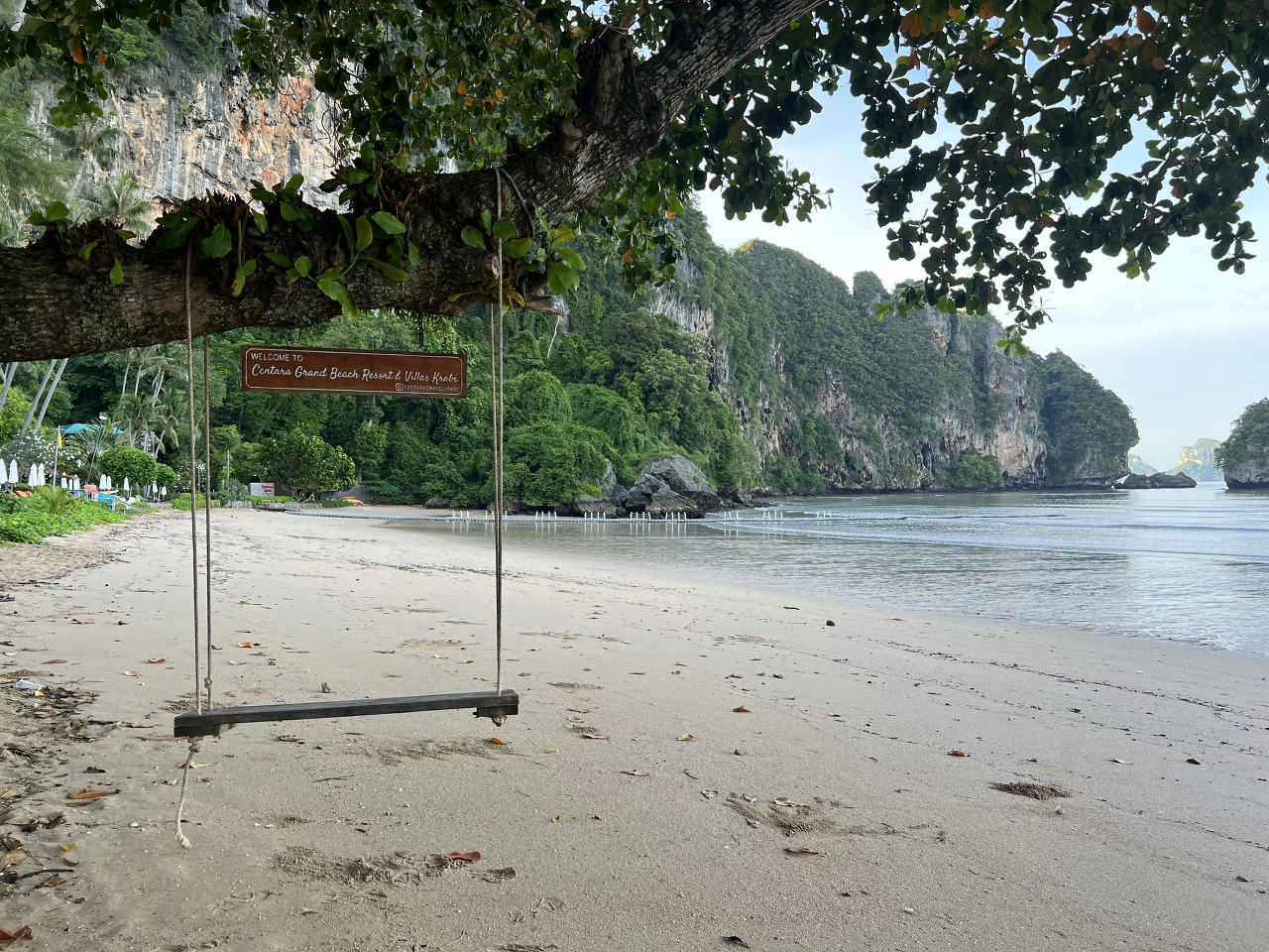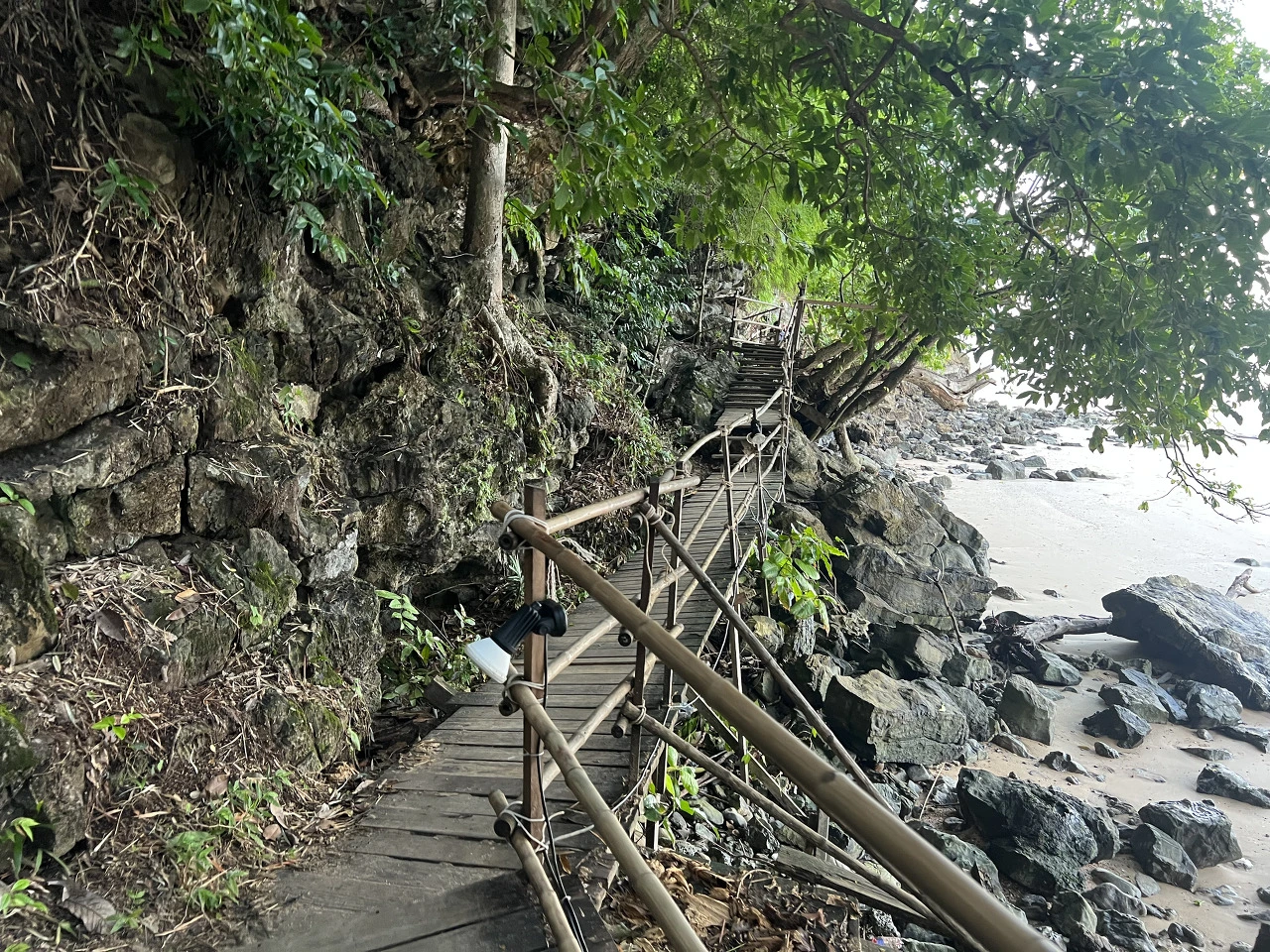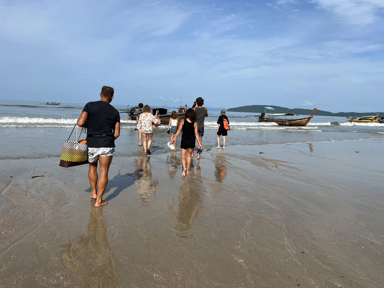 점심식사를 마치고 나니, 피곤이 밀려온다. 옷과 에코백은 진흙으로 엉망이고 약간 컨디션도 좋지 않아 주말동안 예약한 숙소로 돌아가고 싶었다. 레일레이 해변의 모래사장은 아침과 달리 바닷물에 잠겨있다. 해변끝에 아오낭으로 돌아갈 배들이 있는 선착장이 보인다.