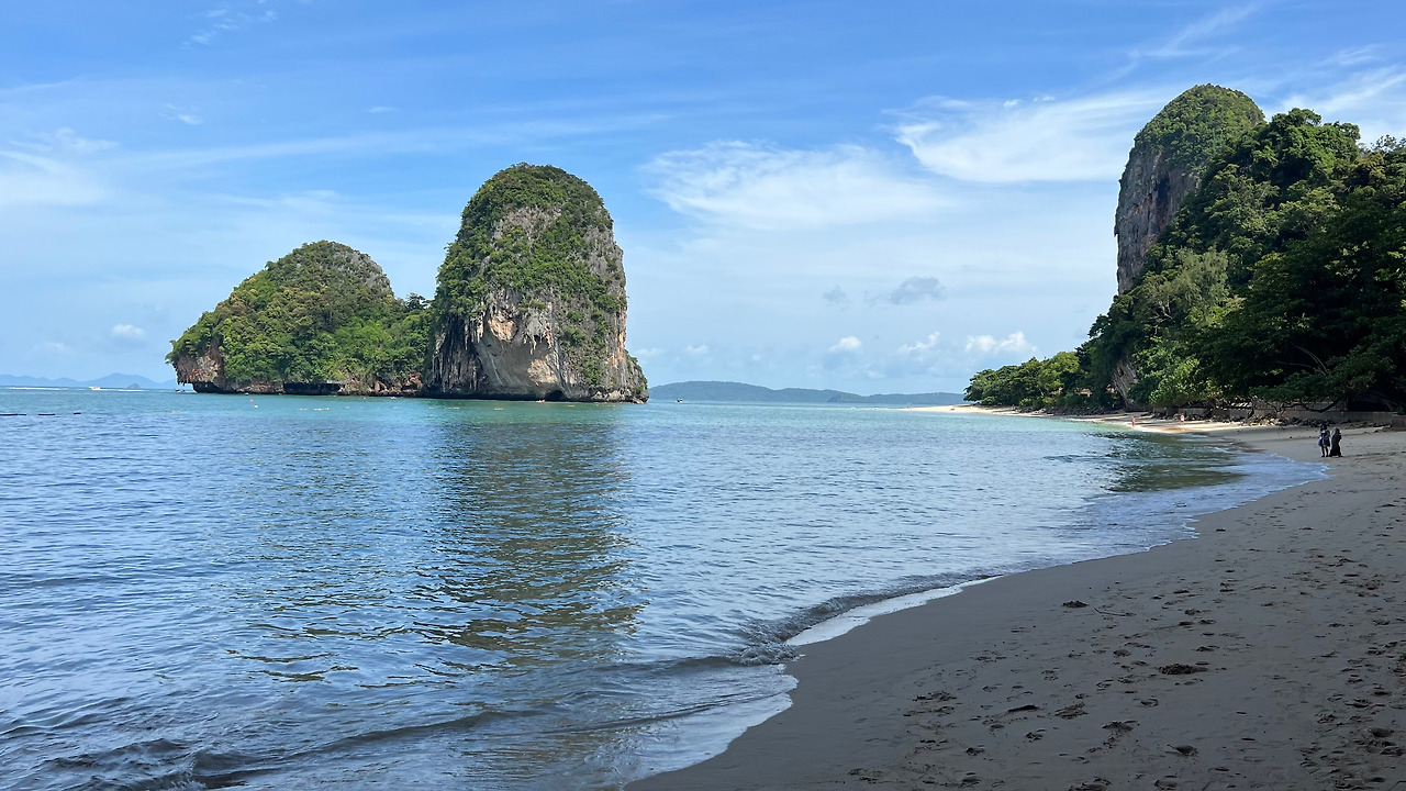 끄라비 관련 유튜브 동영상을 보면, 끄라비에 오면 반드시 라일레이 해변을 방문하라는 조언들이 많았다. 라일레이 해변은 생각보다 예쁘지 않은 끄라비 아오낭 해변의 아쉬움을 단번에 날려버릴 수 있는 아름다운 해변이었다. 라일레이 해변 근처에는 프라낭 해변이 있는데, 아름다움과 더불어 성인기준으로 수심이 완만하여 수영하기에도 좋았다.