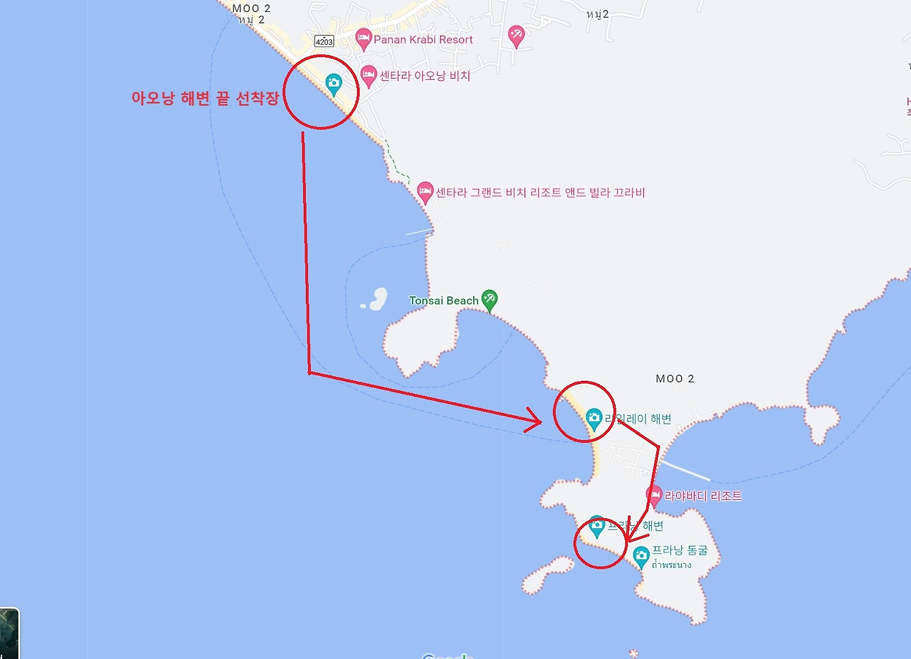 배를 타고 20분 정도 이동을 하니 뱃머리 앞으로 넓은 해변이 보이기 시작했다. 움푹 페인 지형에 넓은 모래사장이 포근하게 느껴졌다. 아오낭 해변과 다른 느낌이다. 어제 홍섬투어에서 본 아름다운 라오라딩 섬의 확장판이랄까?