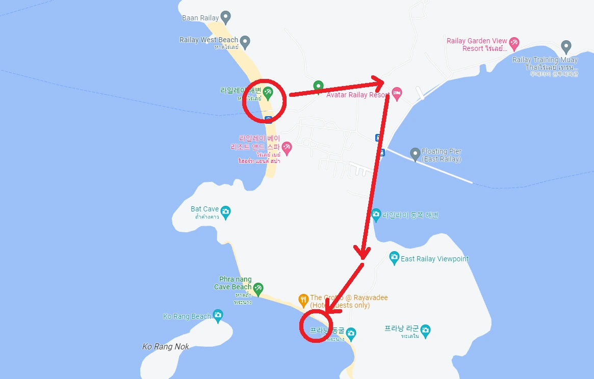 라일레이 해변에서 프라낭 해변으로 걸어서 이동이 가능하고 이것저것 구경하면서 반나절 일정으로 돌아볼 수 있다. 특히 암벽등반에 관심이 있다면, 암벽등반을 예약하여 하루 일정으로 진행한다면 알찬 여행이 될 것이다. 사실 나도 암벽등반 예약을 하고 싶었지만 혼자 왔는데 다치기라도 하면 골치 아플 것 같아 그냥 포기했다.(하지만 다음에 오게 된다면 1순위로...)