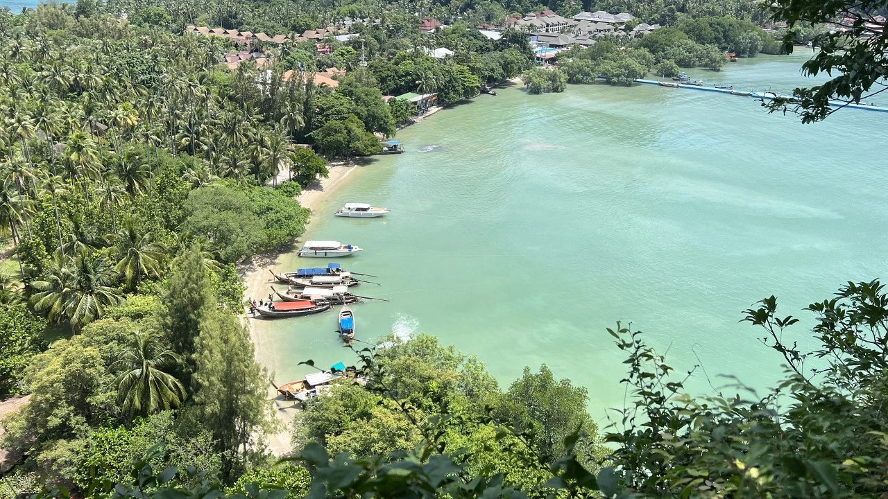 한 100m 정도 올랐으려나..? 평지가 나왔고 길을 따라 가다보니 전망대 비슷한 장소에 도착하였다. 라일레이 해변 반대편 선착장이 보인다. 평범한 풍경이라 별다른 감흥을 느끼지 못했고 다시 발길을 놀려 라군으로 향했다. 축축한 흙들이 신발을 지저분하게 만들고 절벽을 기어오르느라 이미 옷은 진흙으로 엉망이 되었다.