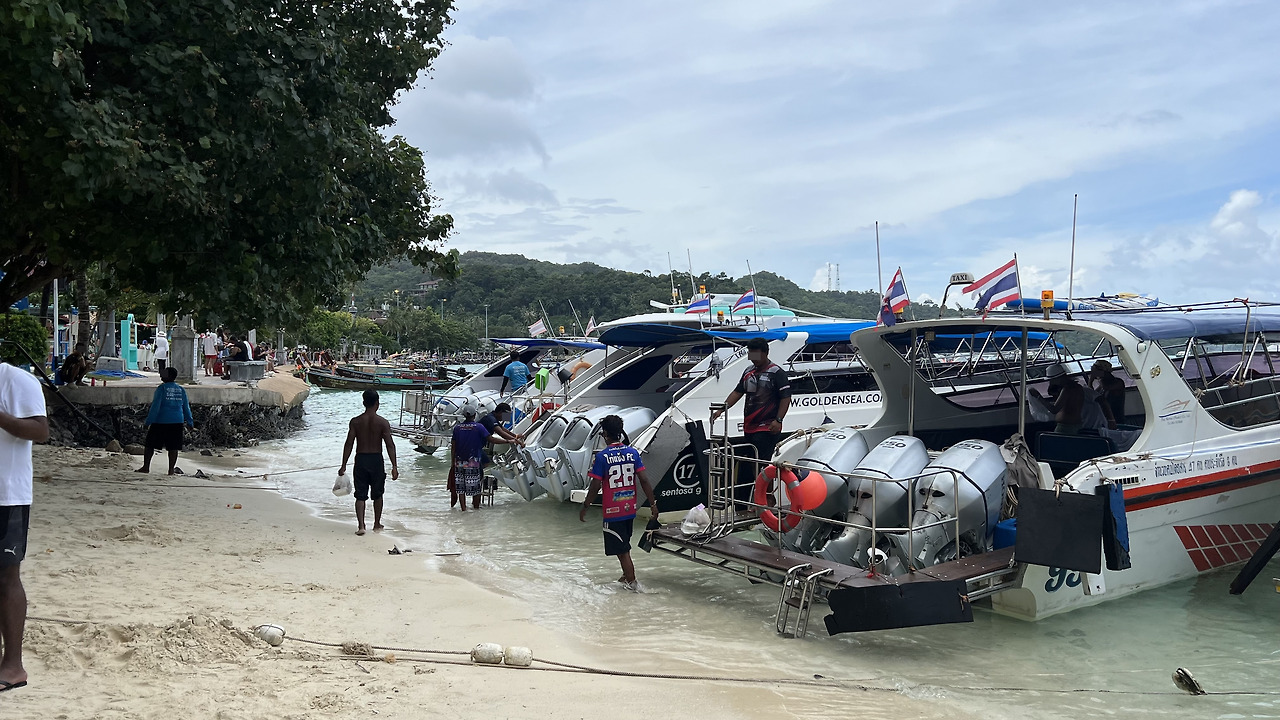 확실히 관광지이다. 화장실 이용료가 짜증날 정도이고 수많은 배들이 해안가에 가득하며, 수많은 사람들이 오고 간다. 섬에 머무는 사람, 잠시 투어를 하는 사람, 푸켓이나 끄라비로 넘어가는 사람.. 참 혼잡하다. 이런 인위적인 관광지 느낌이 별로이다.
