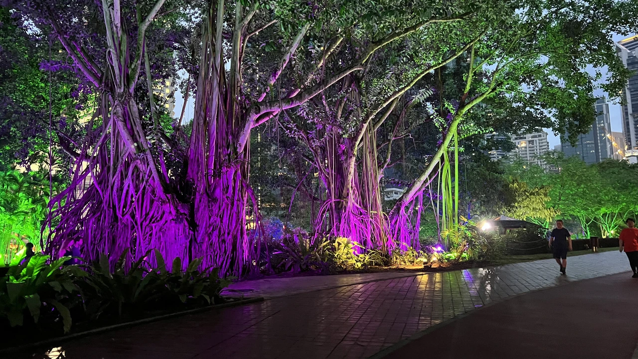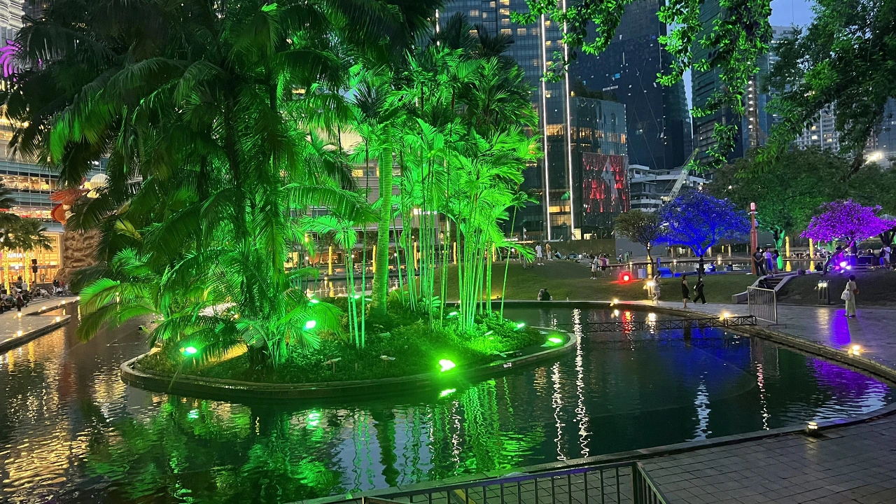 30분 정도 걸어 KLCC 공원에 도착하였다. 넓은 공원이다. 해가 빠르게 저물어가고 어두워진만큼 화려한 조명이 더욱더 빛나고 있었다. 여기를 전체적으로 둘러보기에는 체력이 허락하지 않을 것 같아 공원을 대충 보고 트위타워가 보이는 쪽으로 이동하였다.