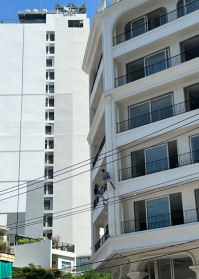 두사람이 일을 하면서 이야기를 나누는 모습을 보니, 오랫동안 해왔던 노하우와 관록이 느껴진다. 아마 저 일꾼들은 절대로 끊어지지 않을 것이라는 줄에 대한 믿음이 있을 것이다. 물론 작업을 하기전에 줄의 상태를 체크하면서 안전 여부를 확인했을 것이다. 그럼에도 불구하고 저렇게 외줄에 매달릴 수 있다는 것은 대단한 멘탈을 가지고 있음에 틀림없다.