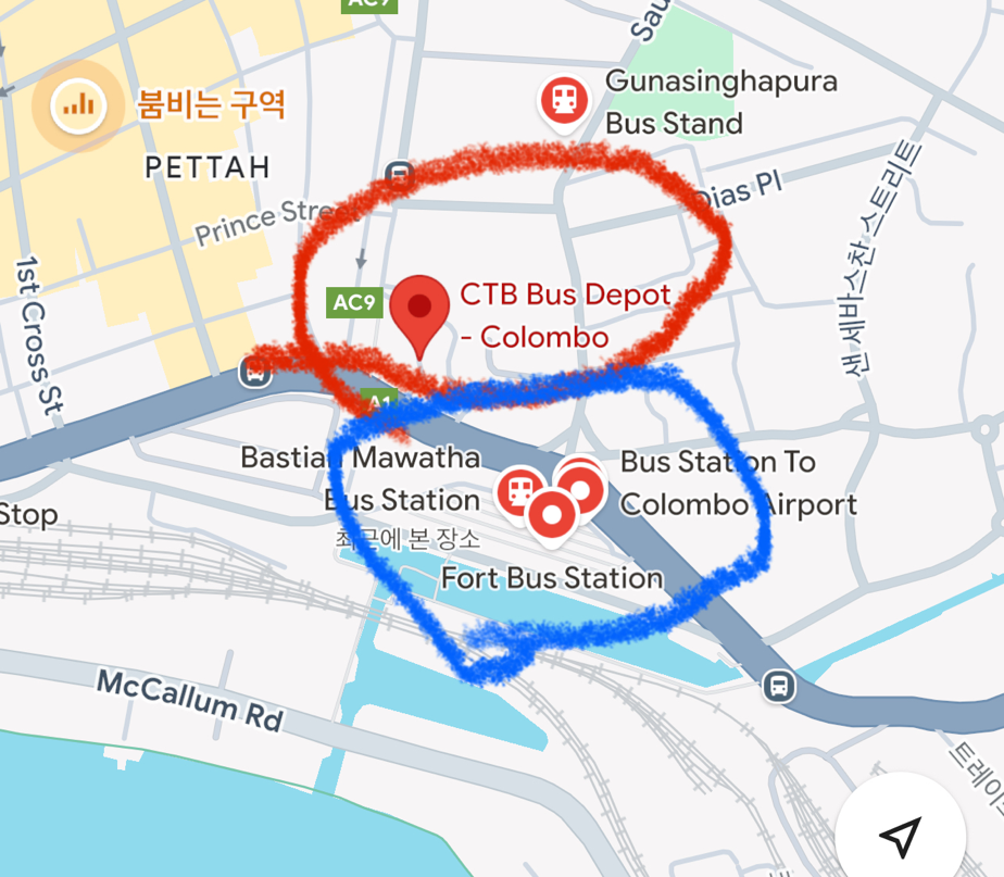 스리랑카 콜롬보에서 1박을 하고 여행 계획을 세울 때, 담불라까지 기차를 탈까도 생각했지만 의도하지 않게 콜롬보에서 담불라까지 로컬 버스를 타게 되었다. 담불라로 가는 버스는 2가지가 있는데, 하나는 국유버스인 완전 로컬버스(빨간색)이고 하나는 사설 버스(파란색)인 듯하다.