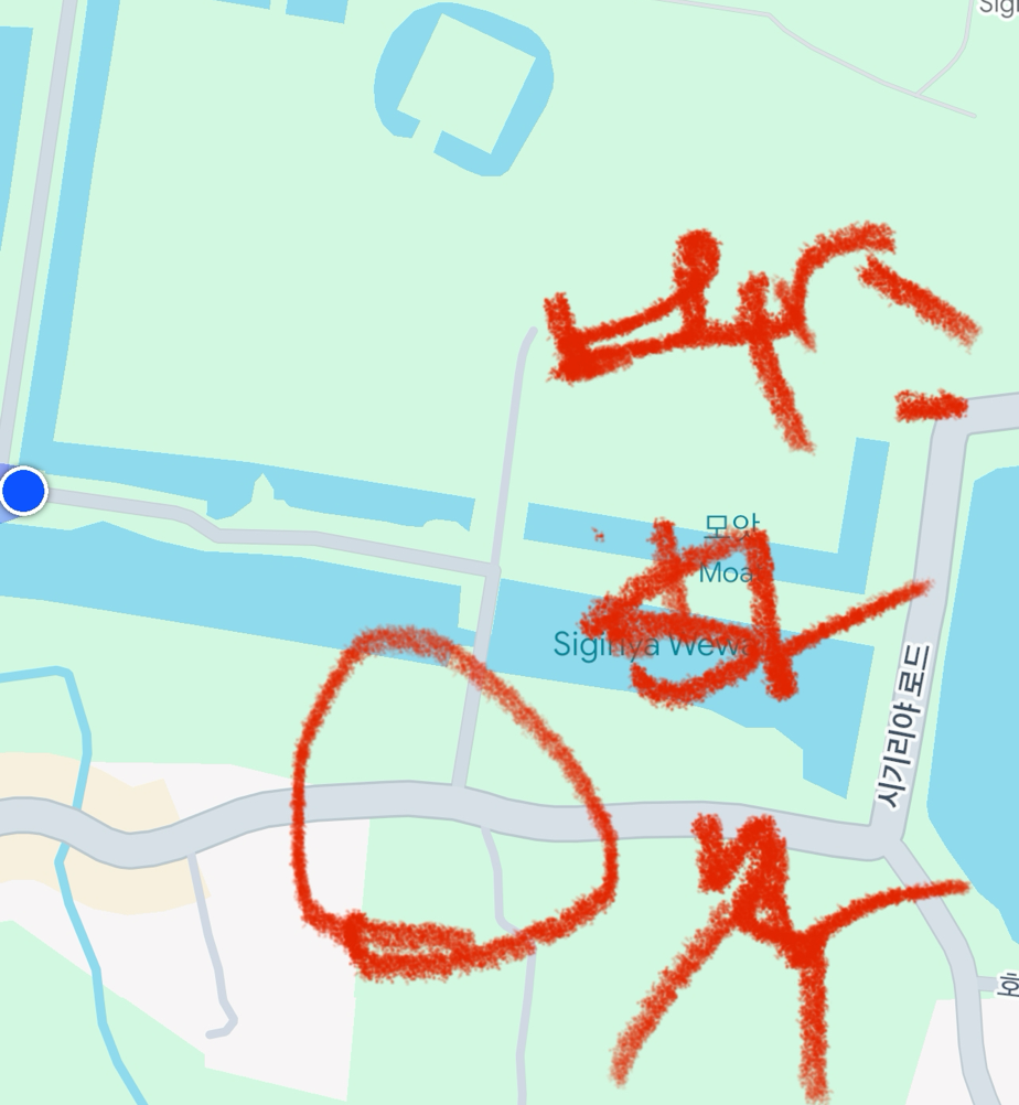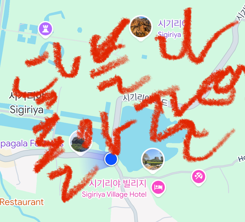 이제 다시 담불라로 돌아갸야 하는데, 체력이 문제다. 다시 시기리야쪽으로 걸어와 아까 내렸던 정류장 근처 버스 타는 곳으로 이동해야 하는데, 한참을 걸어야 한다. 되돌아가는 과정에 친절하게도 차를 태워주는 분이 계셔서 편하게 올 수 있었다. 개인적으로 로컬 버스를 이용하면, 갈거나 올 때는 툭툭을 이용하는 것이 좋을 듯하다(날씨로 인해 걷는 것이 힘들다).