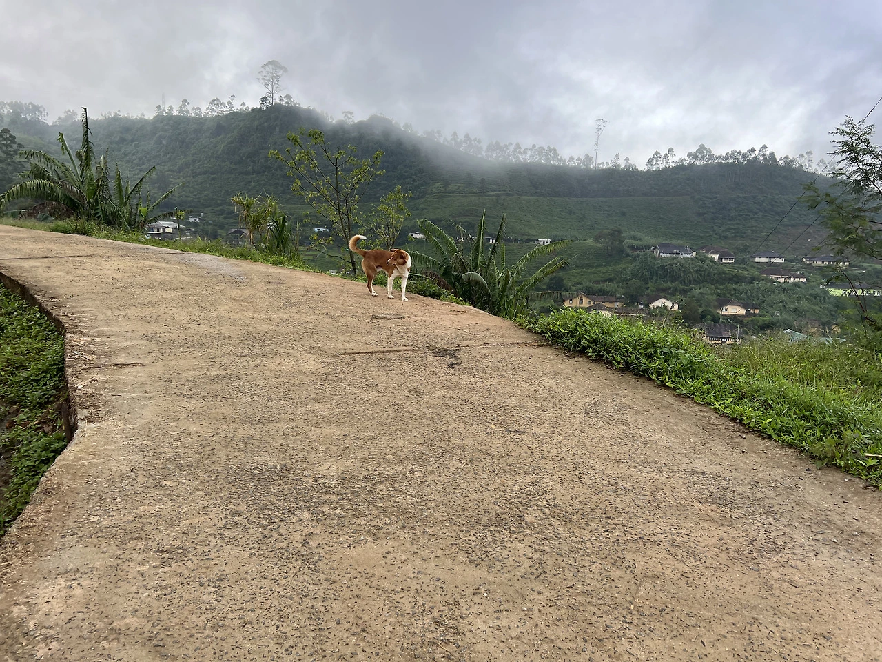 2시간 동안 빈둥거리다 숙소 주변 차밭으로 산책을 나선다. 개가 서로 뒤엉켜 서로 놀고 있다. 스리랑카의 개들은 사람들과 친화적이다. 건드리지만 않으면 으르렁거리지 않는다. 아침 일찍부터 학교가는 학생, 일터로 나서는 사람들이 반갑게 인사를 건넨다. 한 30분을 올라오니, 나누오야의 풍경이 펼쳐진다.