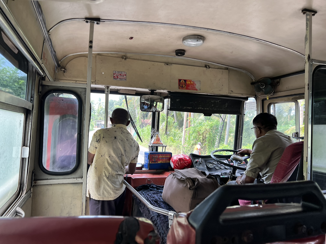 '캔디(Kandy)에서 '마타라(Matara)'라는 지역으로 이동할 때, 좌석이 없어 입석을 타고 갔다. 옛날 강원도의 도로처럼 곧은길이 아니라 좌우로 왔다 갔다하는 고갯길이라 버스가 이리저리 흔들렸다. 더군다나 비가 새는 폐차 수준의 버스(내가 초등학교때 보던 버스)라 오래된 디젤엔진의 끊임없는 진동에 시달려야 했다.