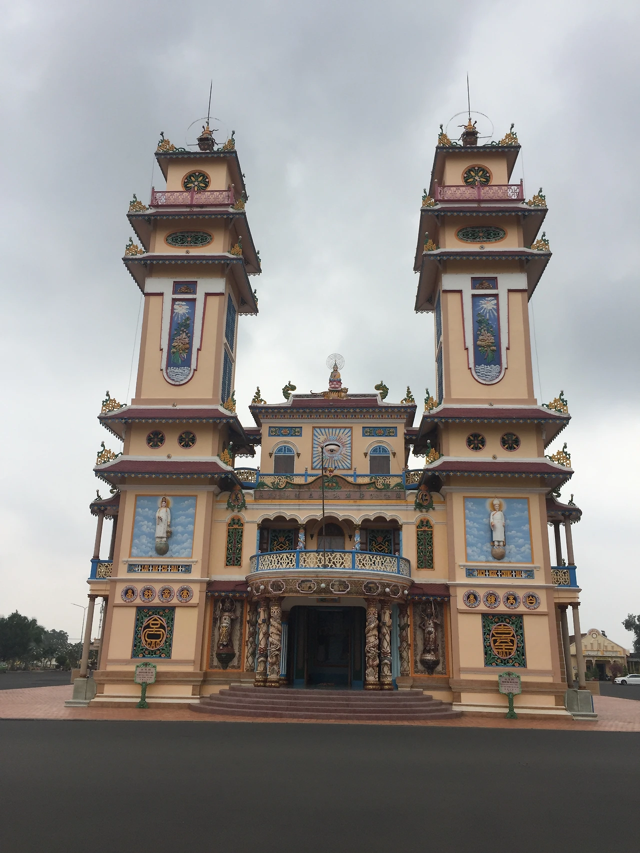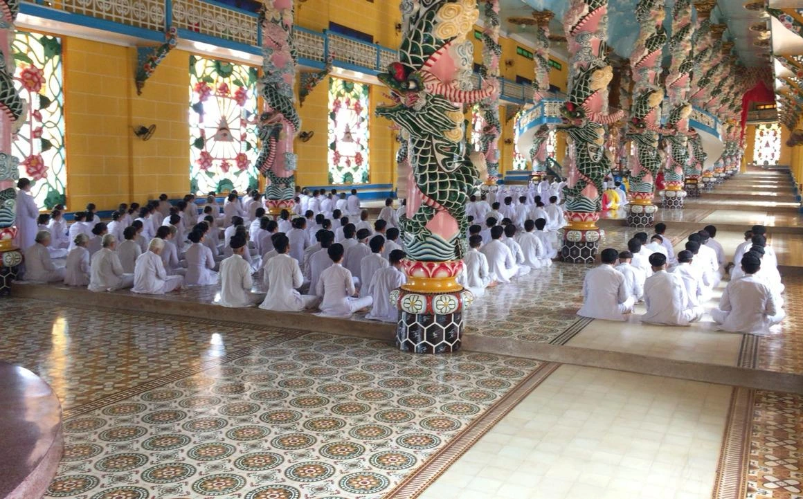 까오다이교는 불교, 도교, 유교, 그리스도교, 이슬람교 등이 융합된 독특한 형태의 종교이다. 까오다이 사원은 까오다이교 총본산으로 떠이닌 지역에 위치하고 있다. 하루에 4번 예배가 이루어지는데, 이때, 일반 신도들은 흰색 아오자이를 입는다.(종교 지도자들은 흰색이 아닌 노란색(불교), 파란색(도교), 빨간색(유교) 옷을 입는다.)