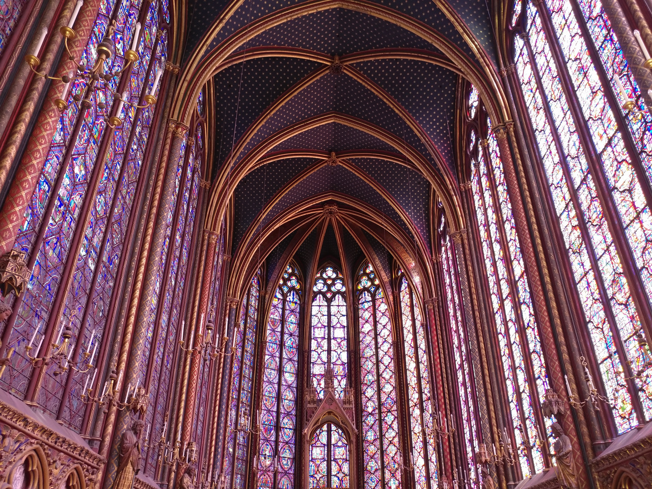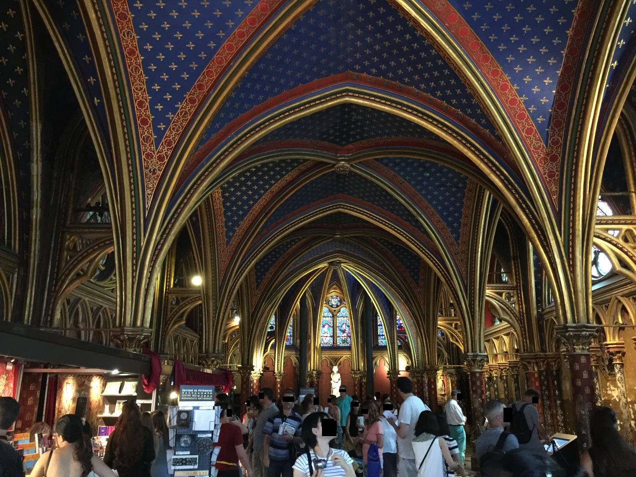 루이 9세 시기에 지어진 성당으로 2층으로 구분되어 있다. 1층은 서민, 2층은 왕족과 귀족이 예배를 드렸다고 한다. 파리 성당 중에서 가장 멋진 스테인드글라스를 볼 수 있는 성당으로 감탄사가 저절로 나온다.