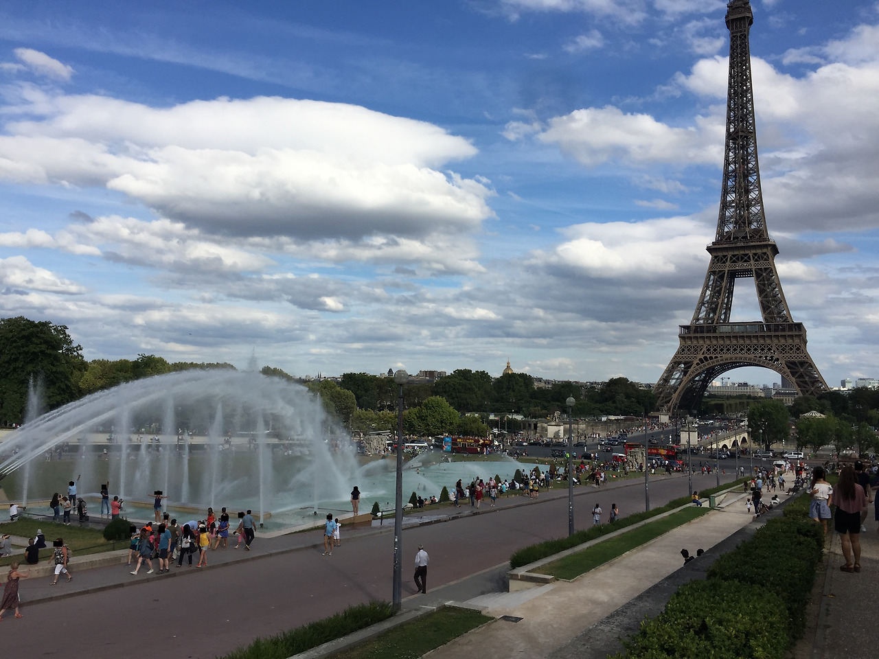 에펠탑 반대쪽인 샤요궁(Palais de Chaillot) 쪽에서 바라본다면, 분수가 인상적인 트로이카데로 공원(Trocadero Gardens)과 에펠탑이 잘 어울리는 경관을 볼 수 있다.