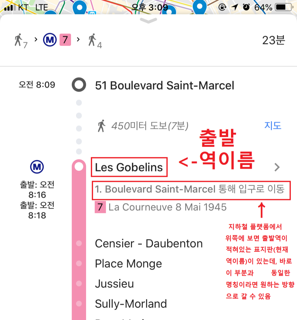 파리 시내에서 목적지까지 이동은 구글 맵의 도움이 정말 많이 되었다. 구글 맵으로 검색하니 목적지로 가는 버스, 기차, 도보 등 다양한 방법을 안내받을 수 있었다.
