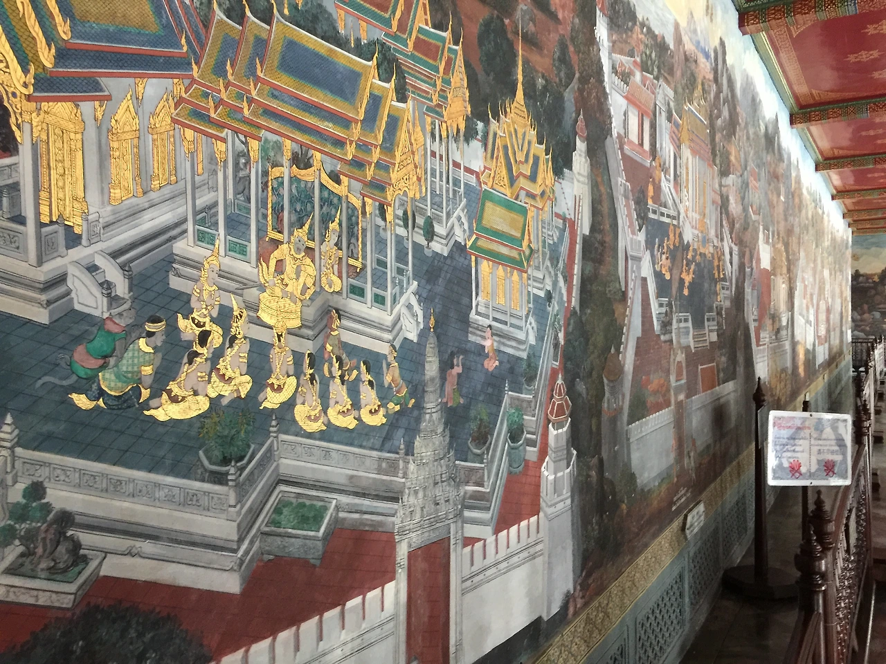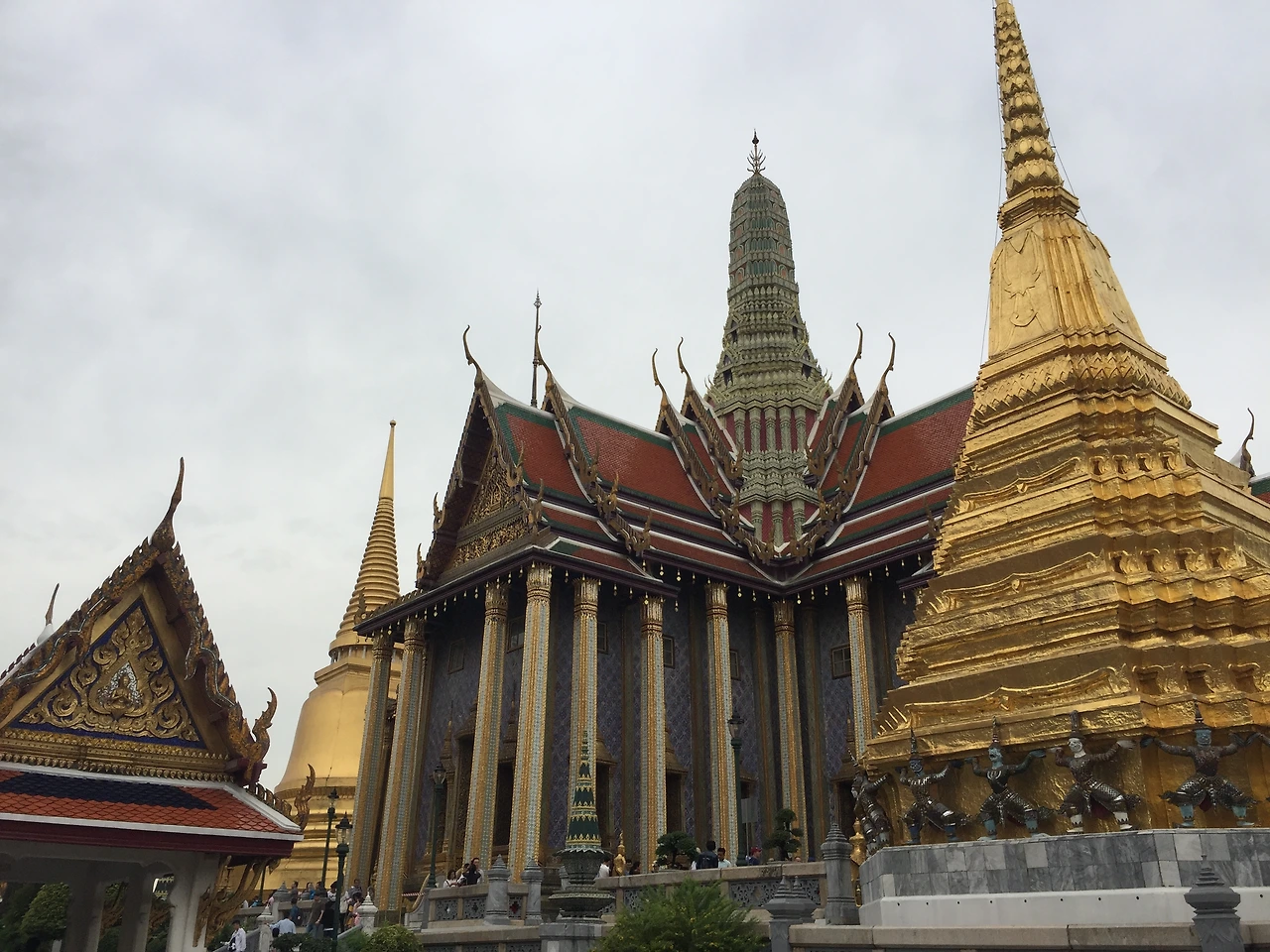 바로 에멜랄드 사원 쪽을 둘러보니 장식이 박힌 기둥과 벽화 등 화려한 건축물들이 나의 눈길을 사로잡았다. 사원의 모습을 사진에 담기에는 그 웅장함과 아름다운 모습을 표현하는데 한계가 있었다.