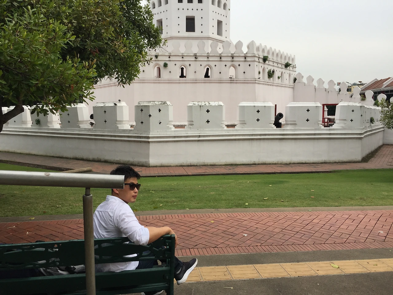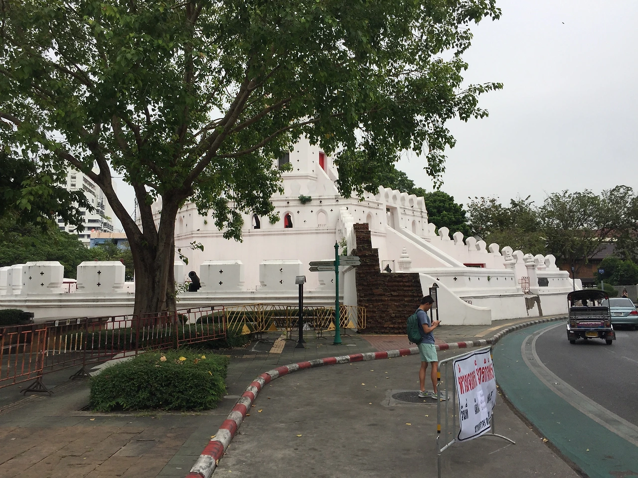 약간의 휴식 후 파쑤멘 요새로 발거음을 옮겼다. 짜오프라야 강 옆에 위치한 하얀색 요새로 강으로 공격하는 적을 방어하기 위해 만들어졌다고 한다. 특별히 웅장하고 거대하지 않지만 하얀색 벽면이 독특하게 느껴진다. 싼띠차이 쁘라칸 공원 벤치에 앉아 요새를 바라보며 사진도 찍어보고 잠시 생각에 잠겨보았다.