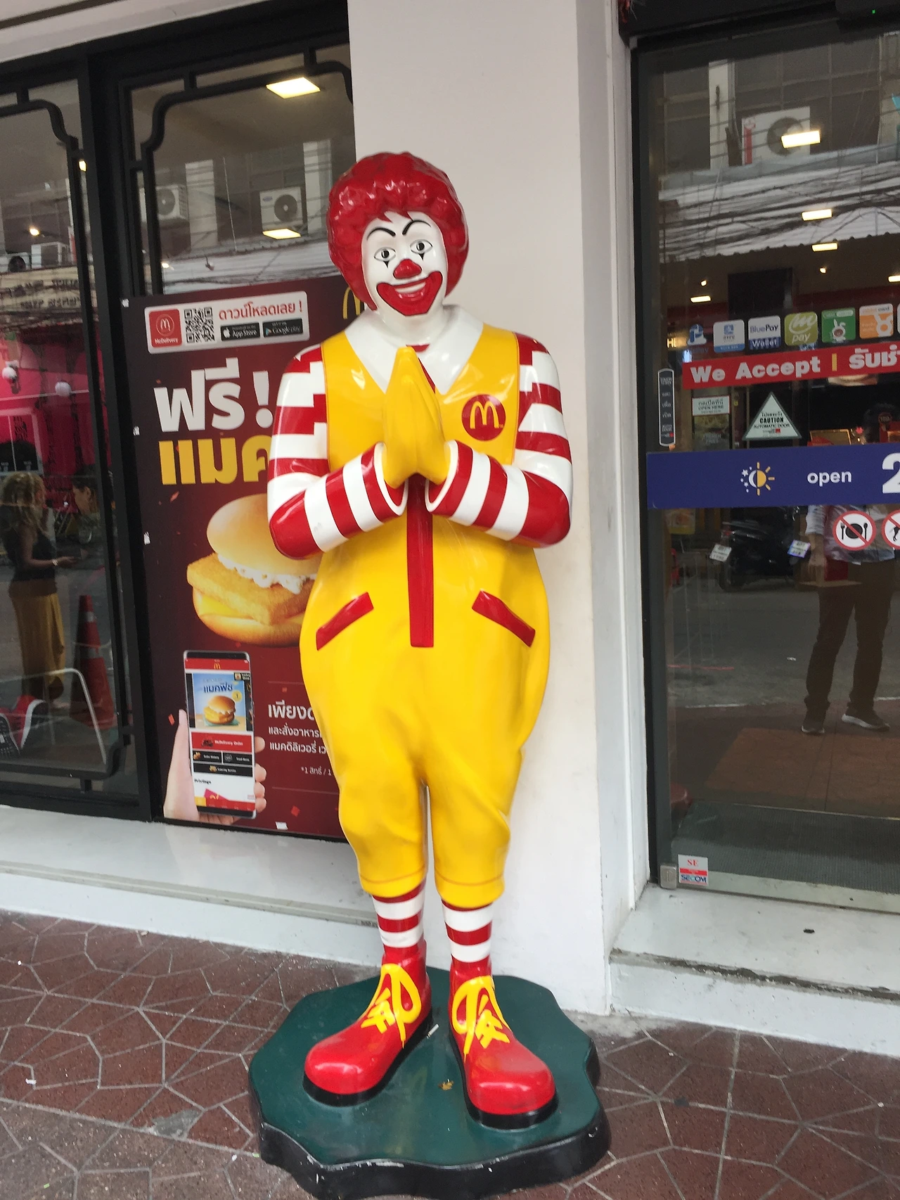 시장은 동남아의 일반적인 시장 형태로 특별함은 없었지만 맥도널드 마스코트가 재미있는 모습으로 서 있었다. 문득 블로그에서 태국 맥도널드에만 있는 콘파이가 맛있다고 하였는데, 결국 미루다 먹어보지 못했다.ㅠㅠ